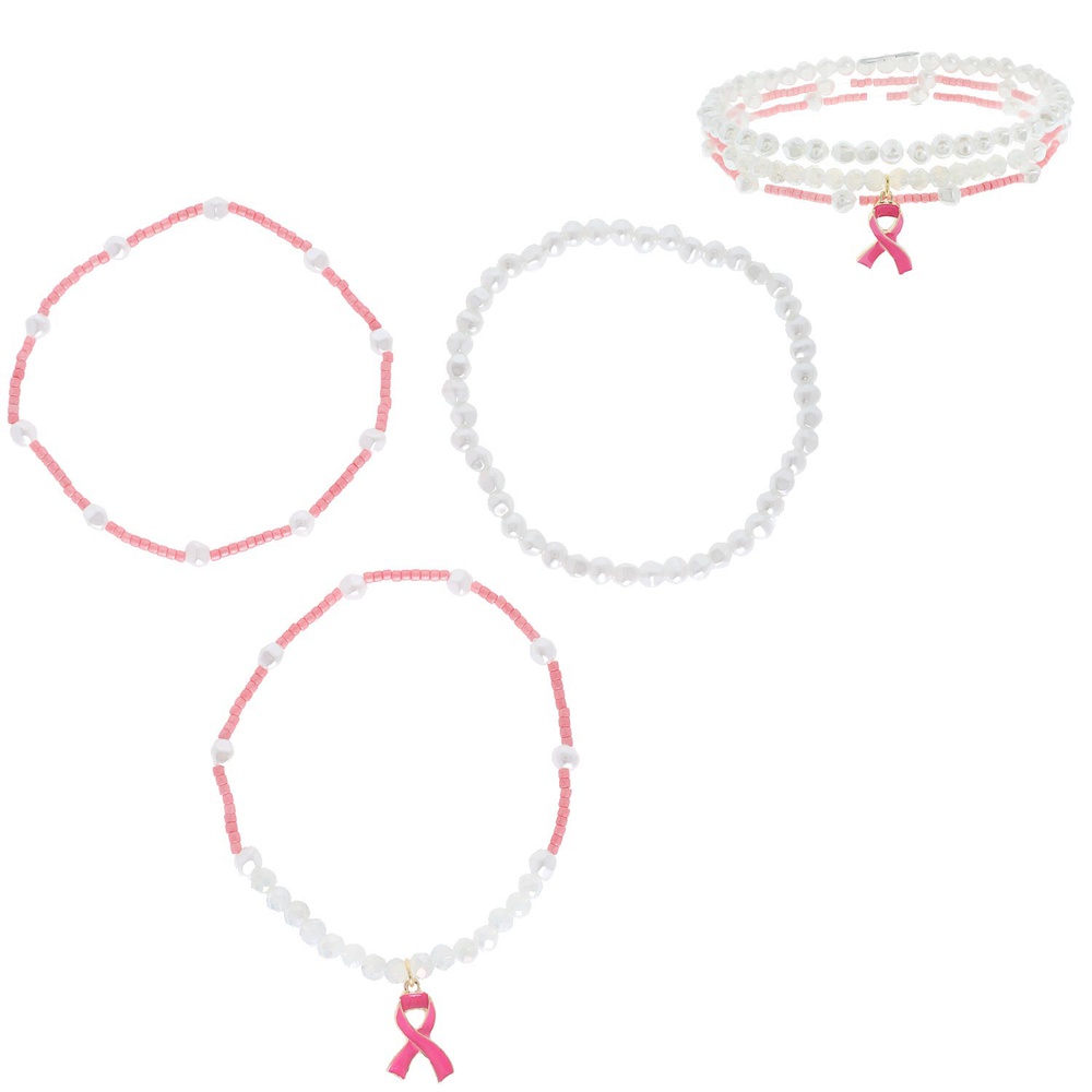 3-pack Pink Ribbon Beaded Charm Bracelet Set