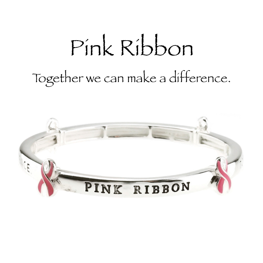 Enamel Pink Ribbon Breast Cancer Awareness "we Can Make A Difference Together" Inspirational Message Stretch Bangle Bracelet