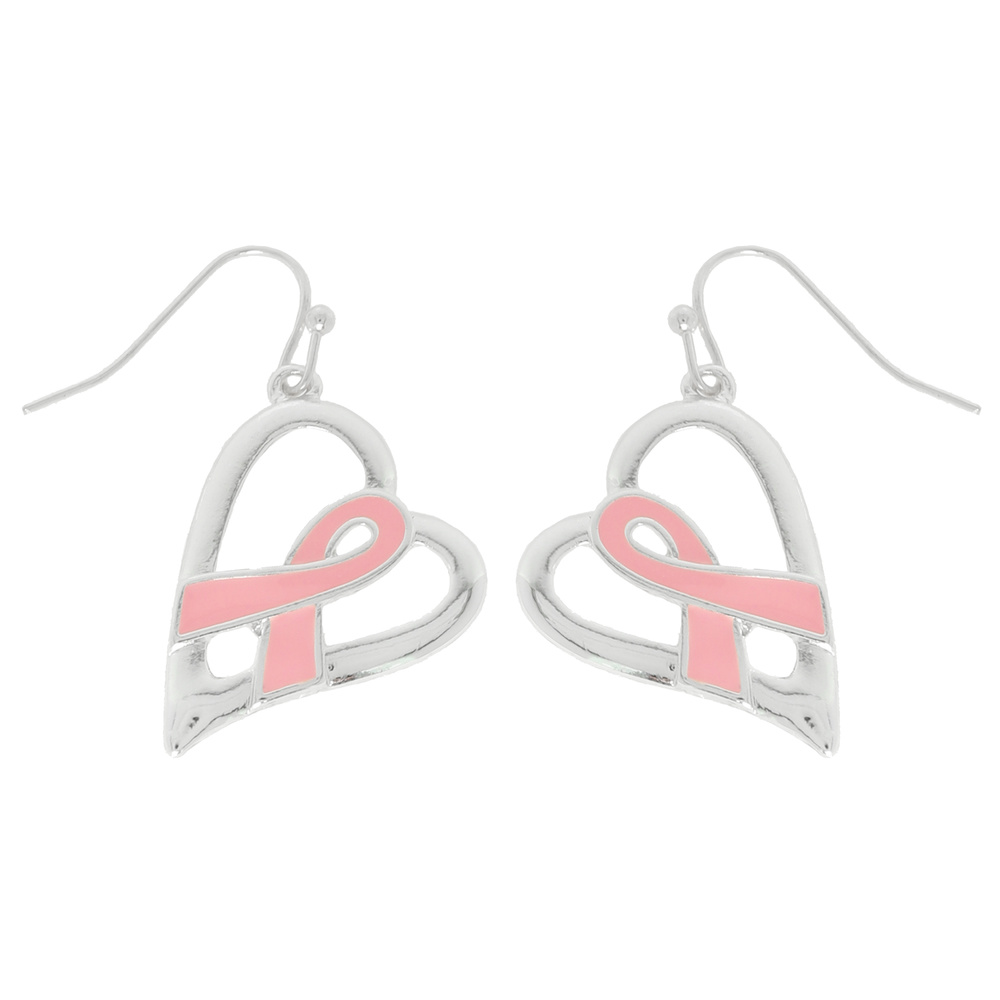 Breast Awareness Cancer Pink Ribbon Heart Earrings