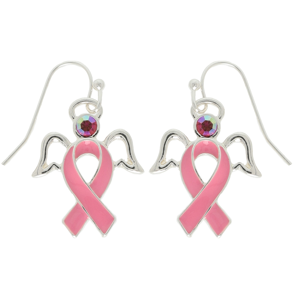 CRYSTAL PINK RIBBON ANGEL WING & HALO EPOXY DANGLE EARRINGS