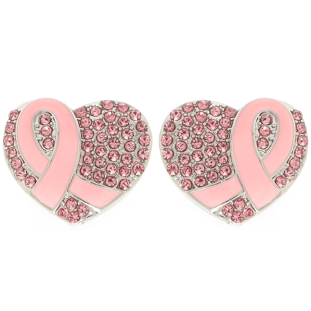 PINK RHINESTONE PAVE BREAST CANCER AWARENESS RIBBON HEART POST EARRINGS