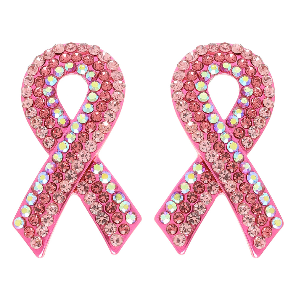Pink Rhinestone Pave Breast Cancer Awareness Ribbon Earrings