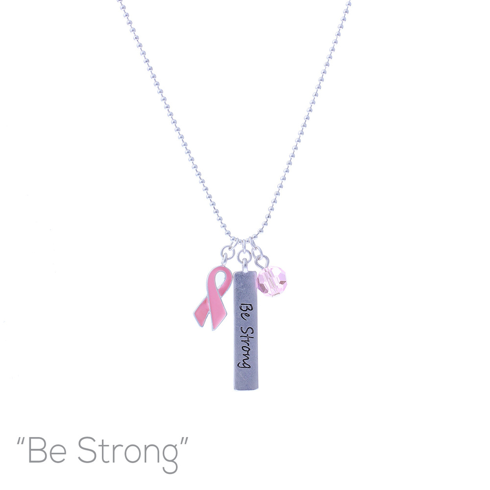 STRONG WITH BREAST CANCER PINK RIBBON CHARM NECKLACE