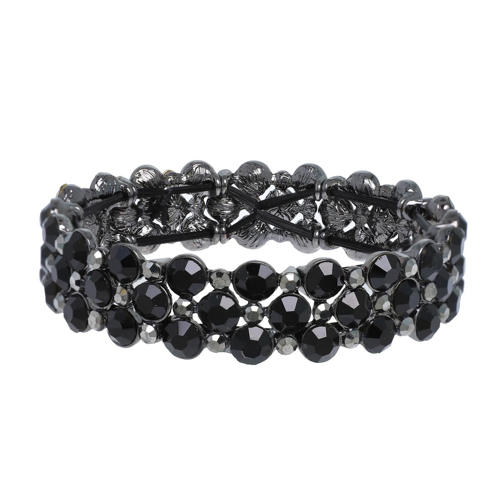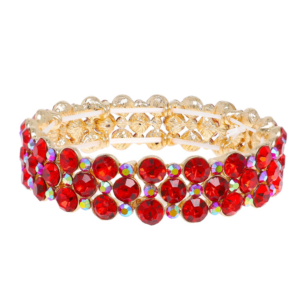 3-ROW CRYSTAL GEMSTONE CIRCLE CUT CLUSTER STRETCH BANGLE BRACELET