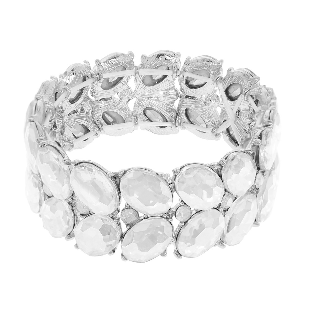 DUAL-ROW CHUNKY OVAL CUT CRYSTAL EMBELLISHED STRETCH BRACELET