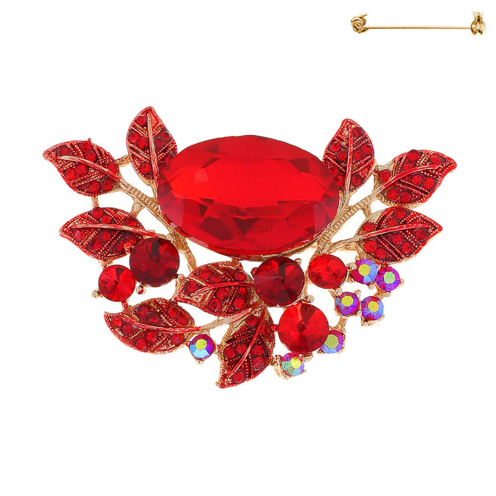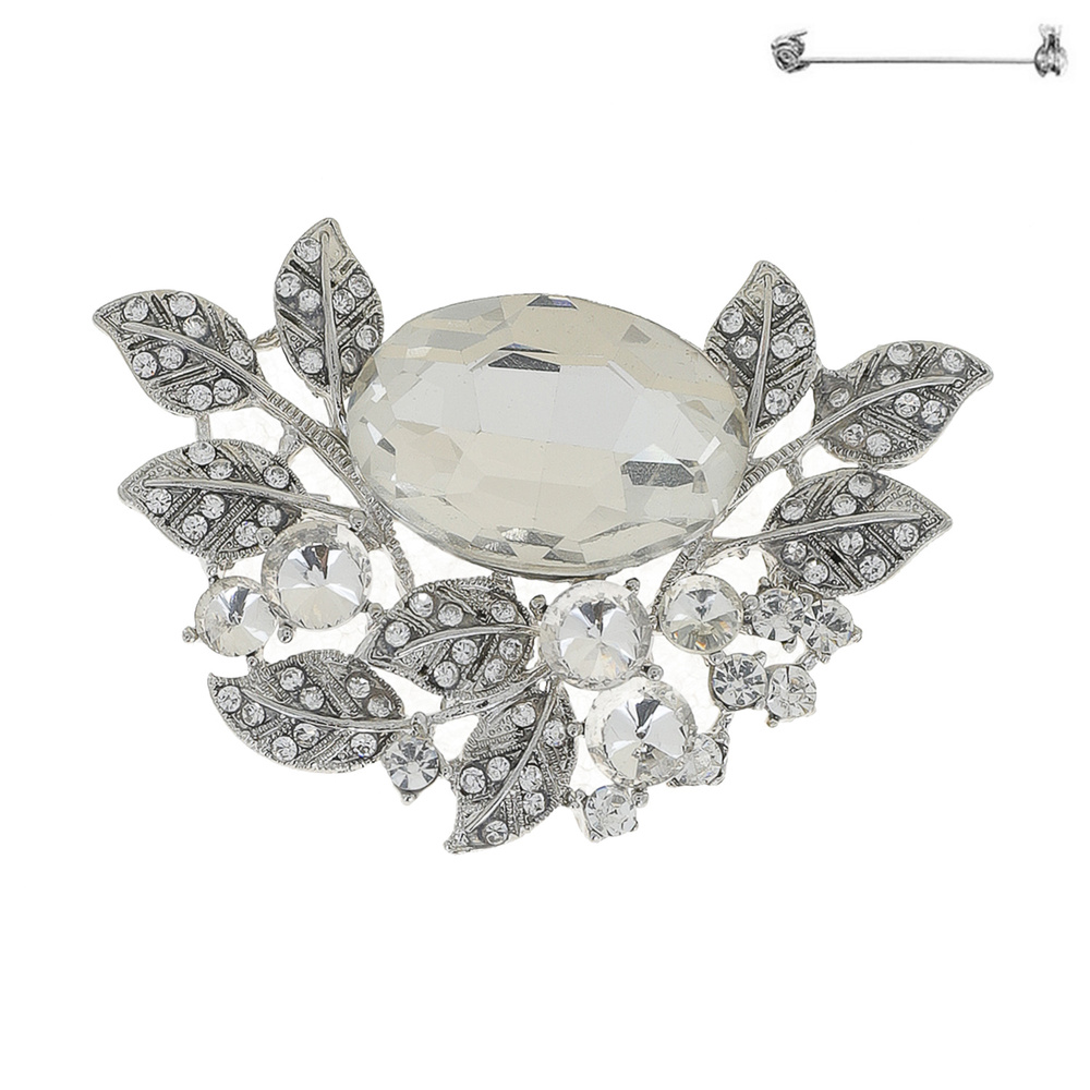 CRYSTAL RHINESTONE PAVE VINE CLUSTER BROOCH PIN