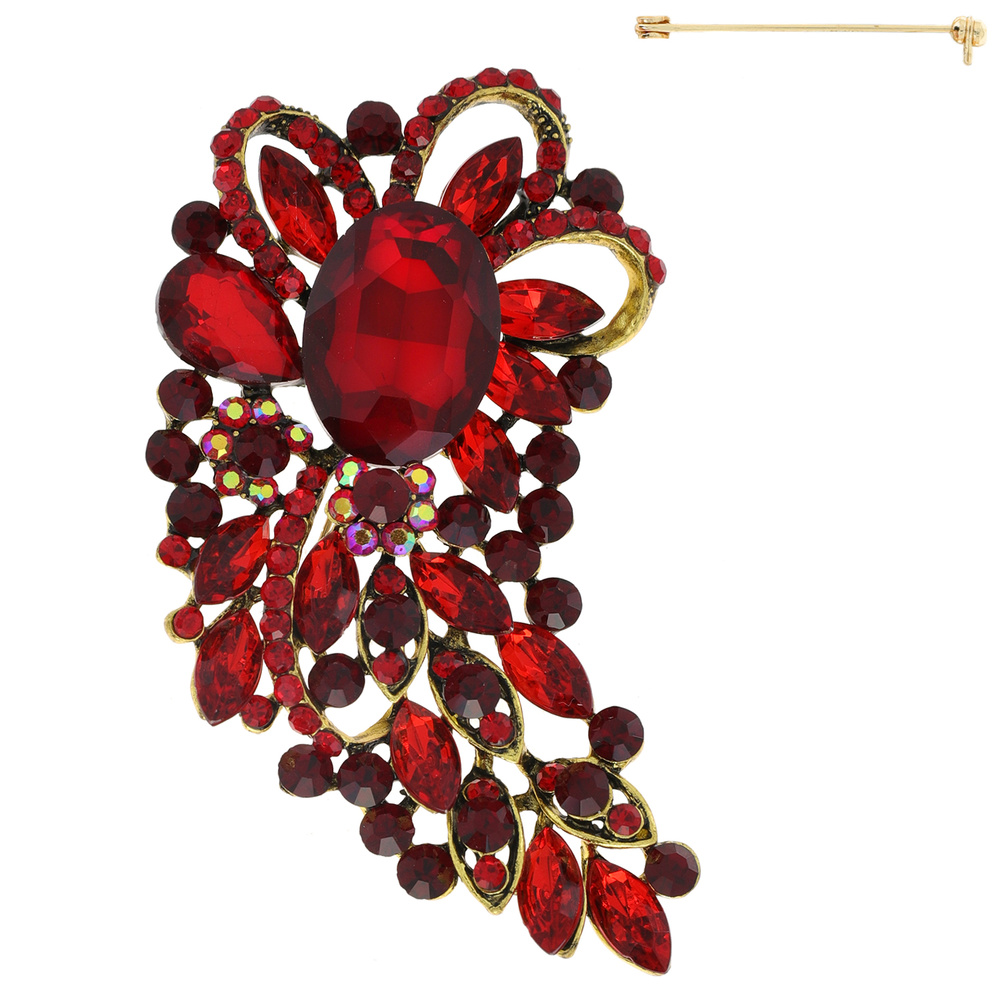 Jeweled Crystal Half Flower Curved Brooch Pin
