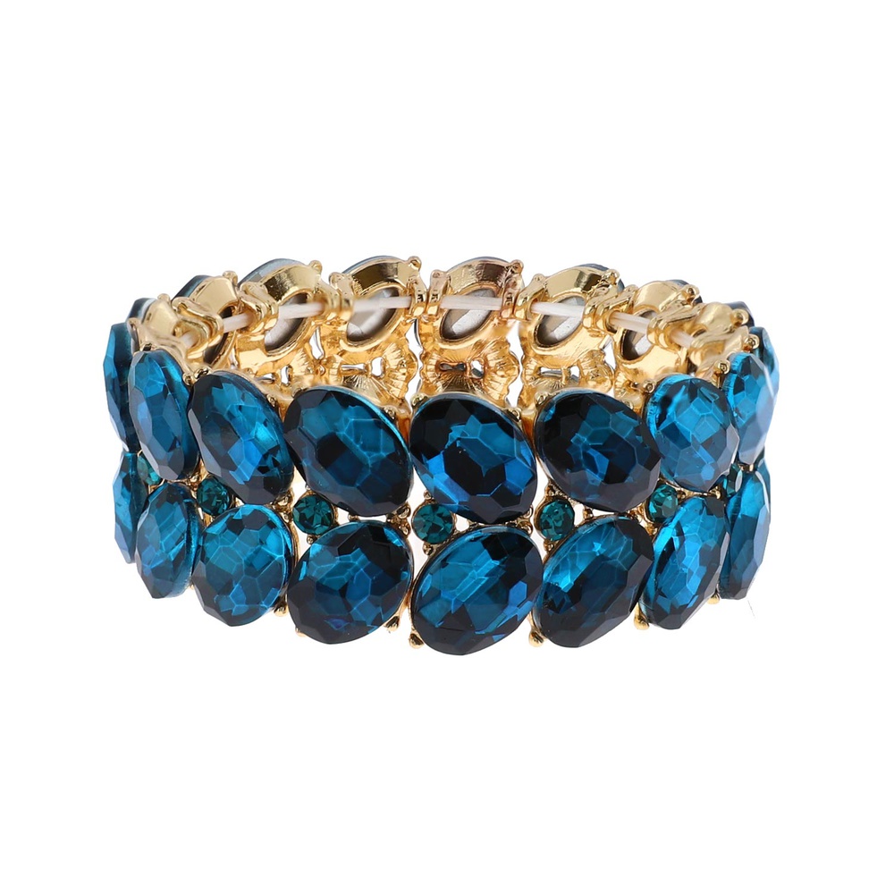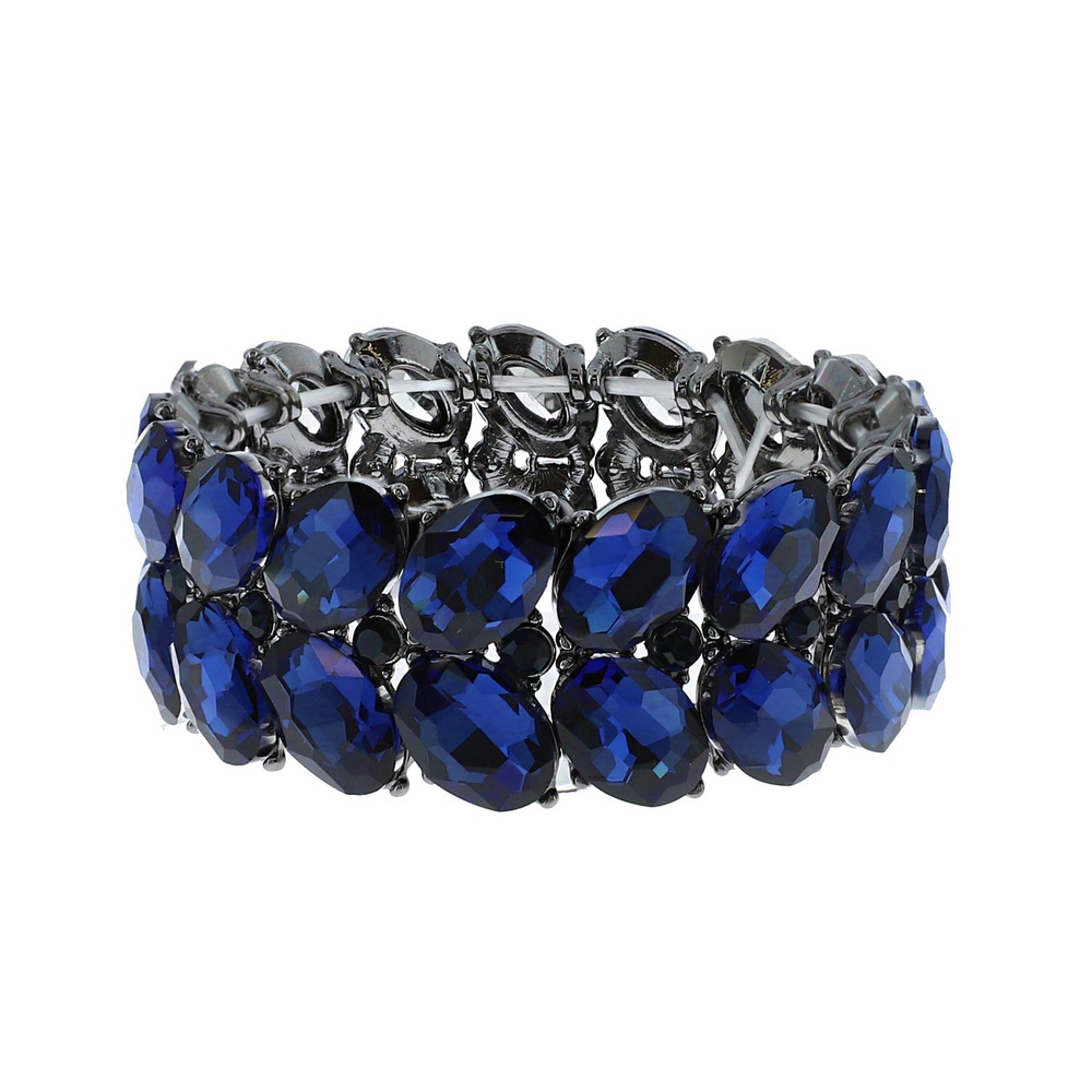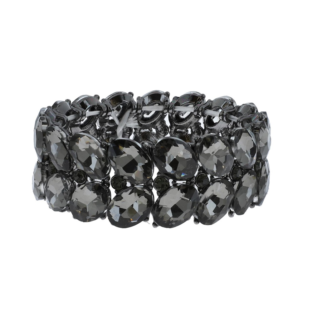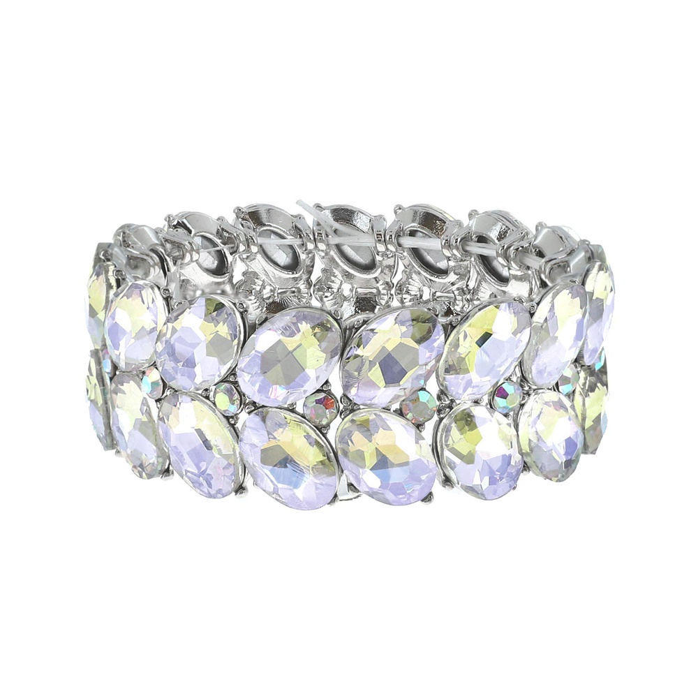2-row Crystal Rhinestone Oval Cut Cluster Stretch Bangle Bracelet