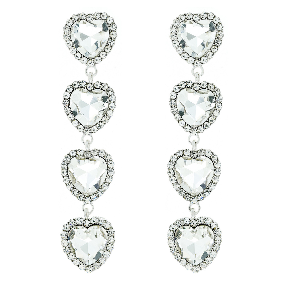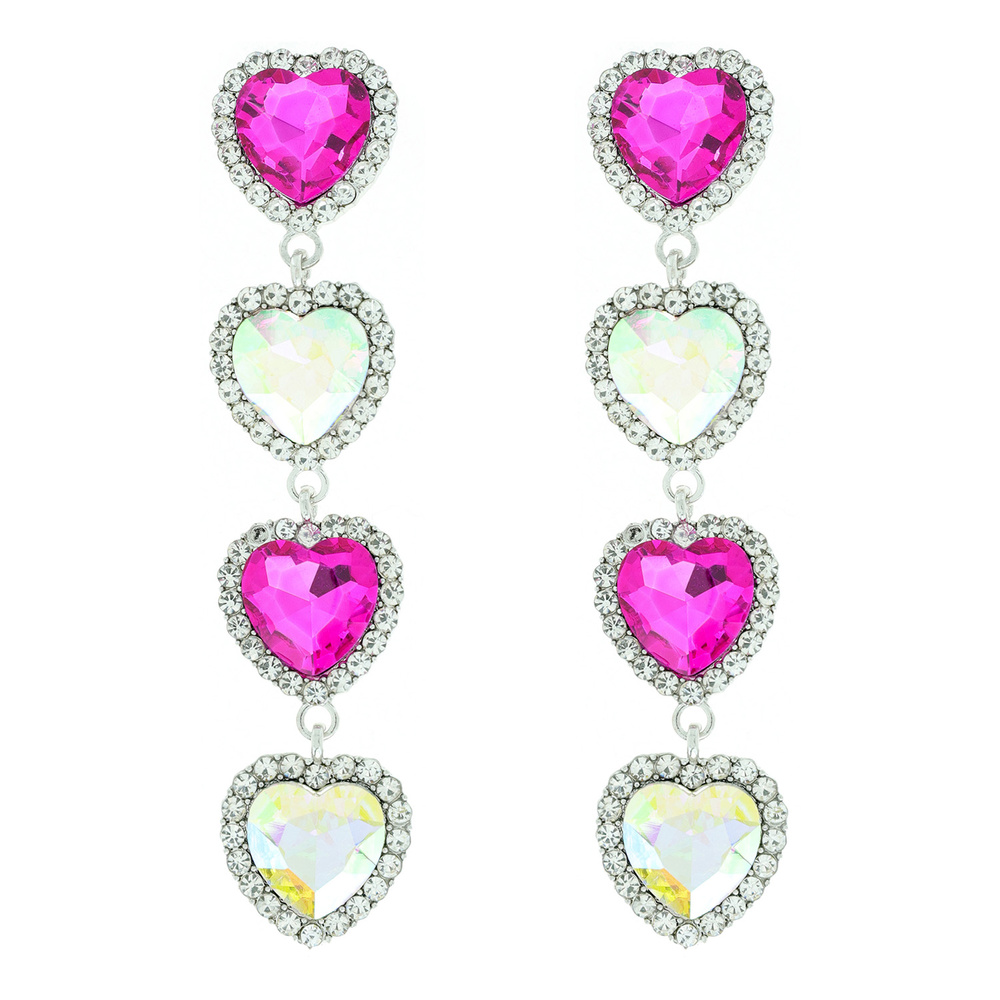 FOUR HEART GEMSTONE WITH RHINESTONE EDGE DROP EARRINGS