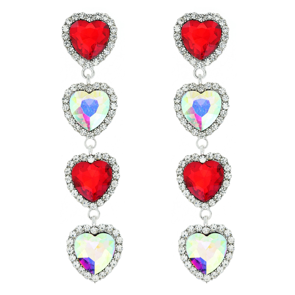 Four Heart Gemstone With Rhinestone Edge Drop Earrings