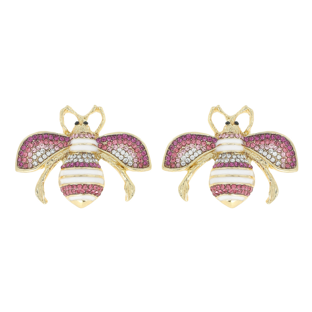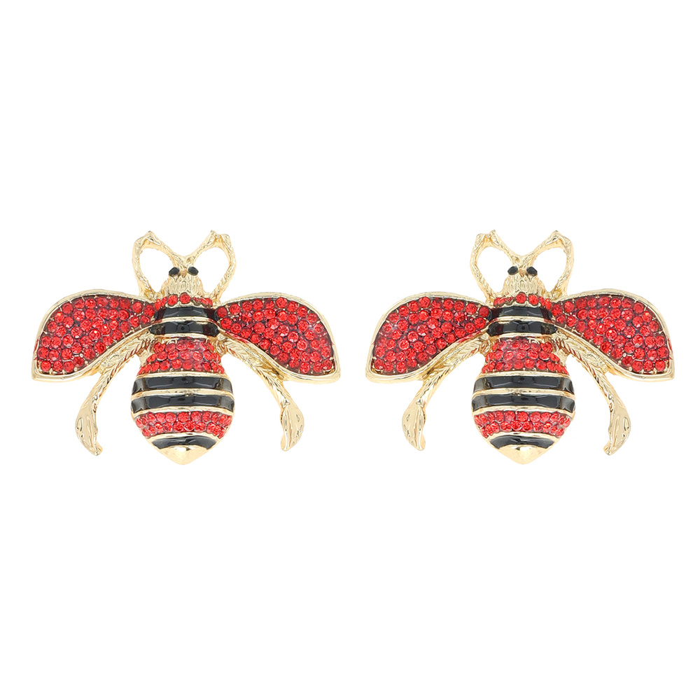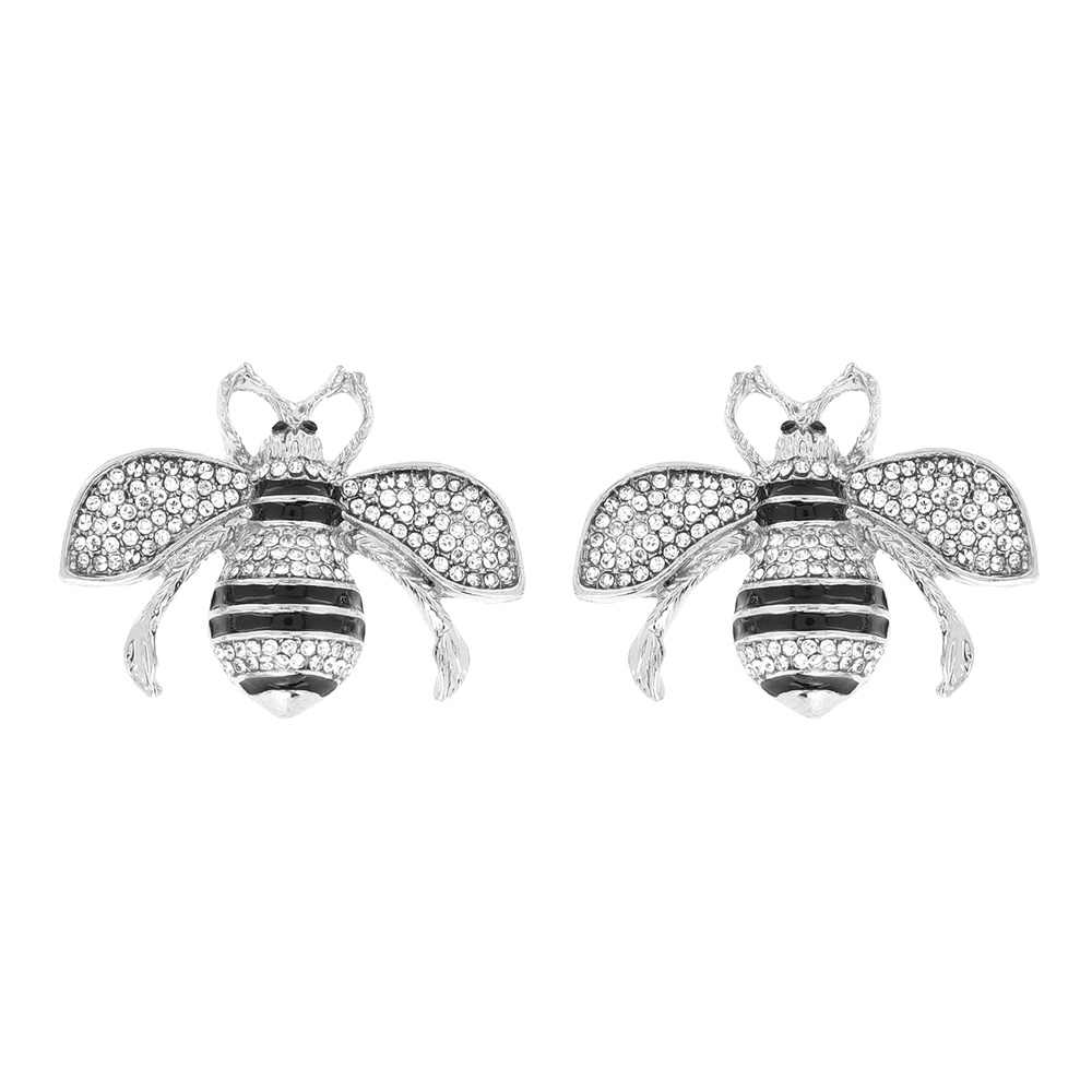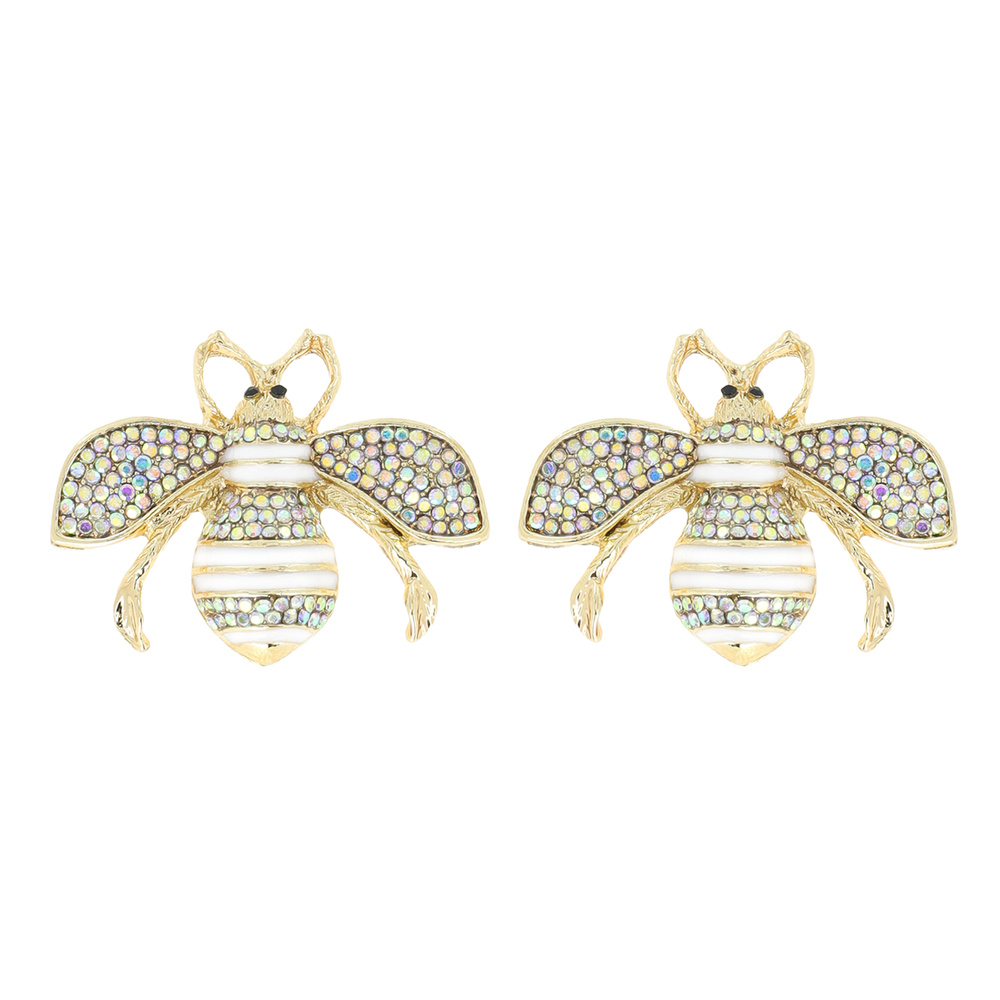 RHINESTONE INSECT BUMBLE HONEY BEE STUD EARRINGS
