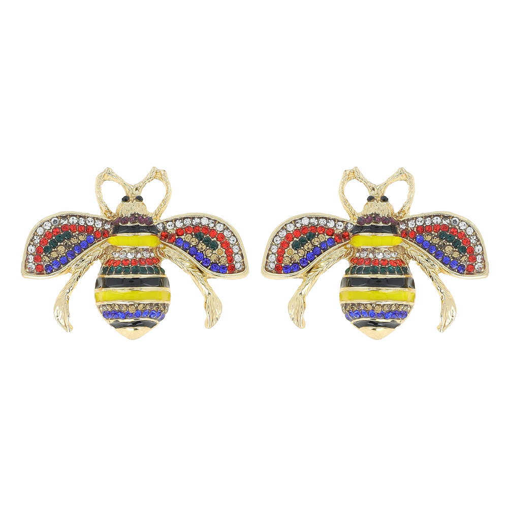 Rhinestone Insect Bumble Honey Bee Stud Earrings