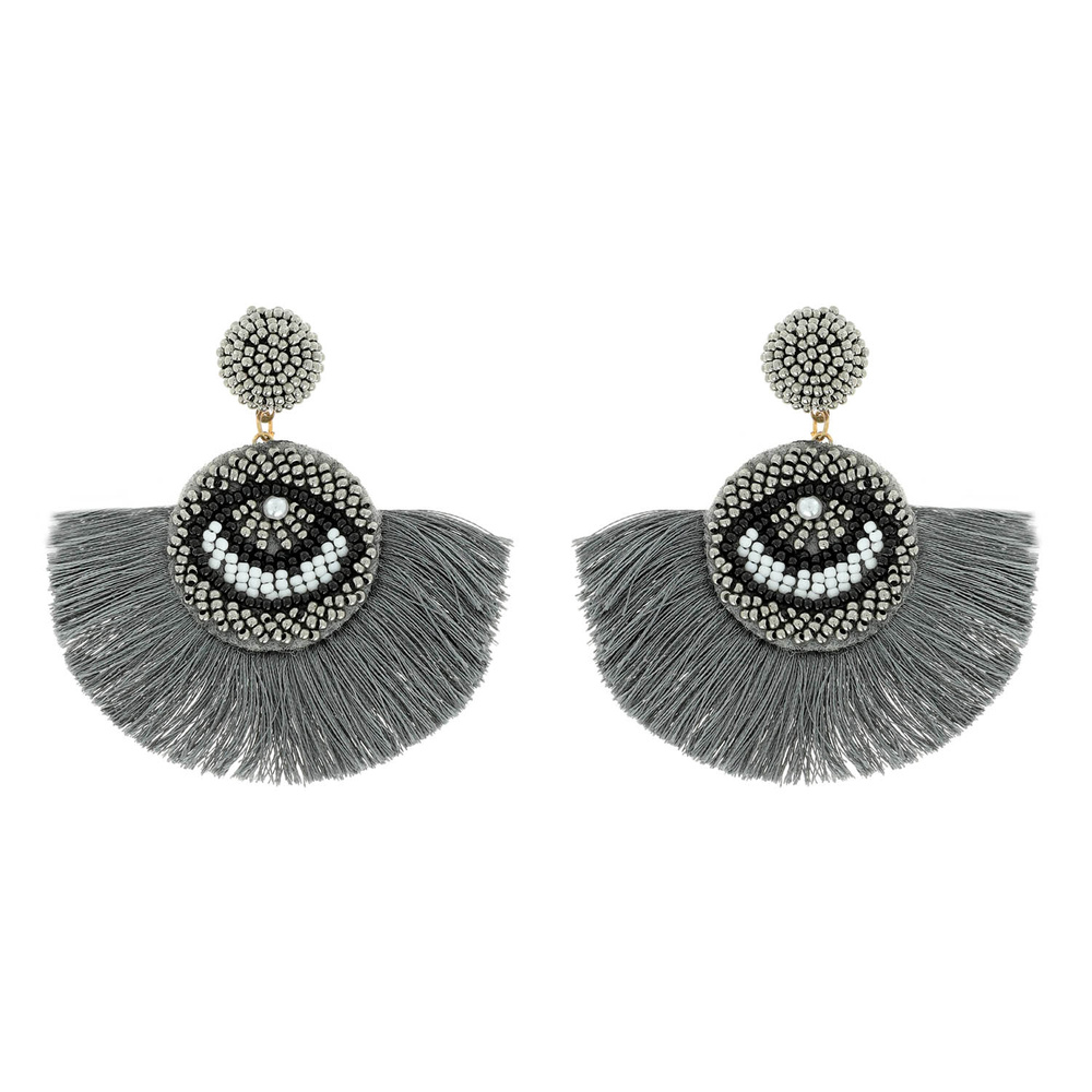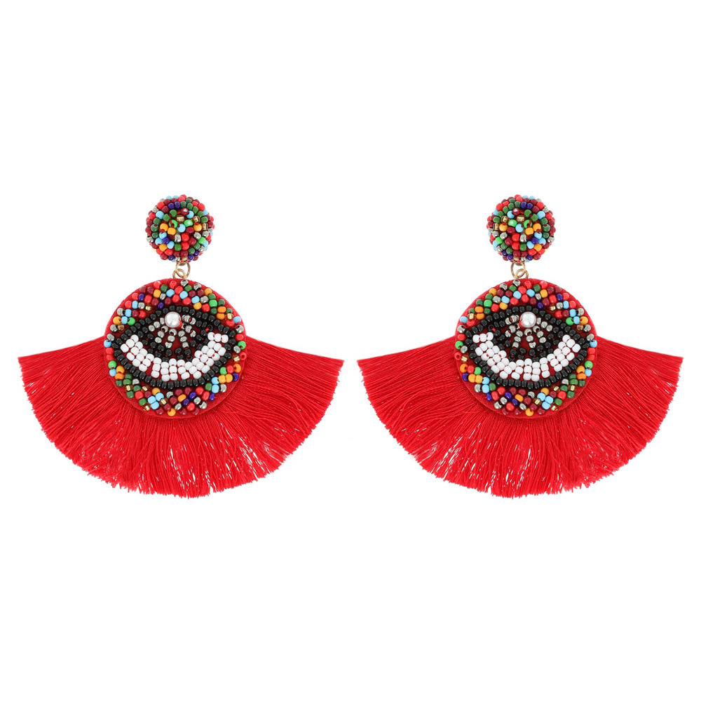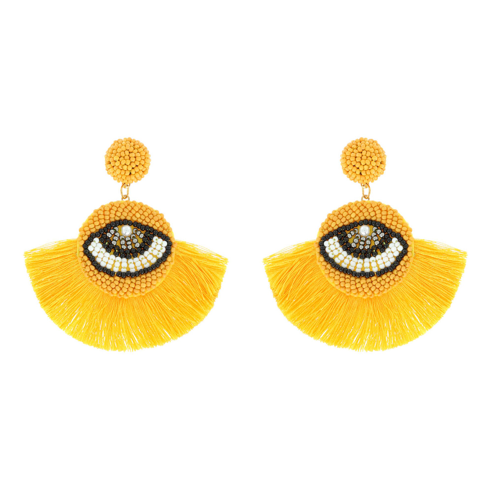 Seed Bead Protection Symbol Evil Eye Fan Tassel Statement Earrings
