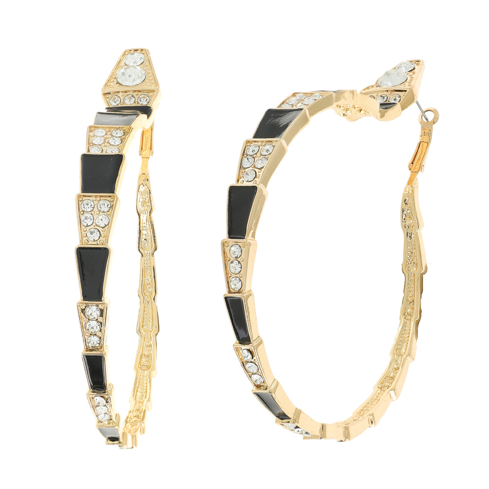 EPOXY AND MULTICOLOR CRYSTAL RHINESTONES SNAKE DESIGN LARGE STATEMENT HOOP EARRINGS