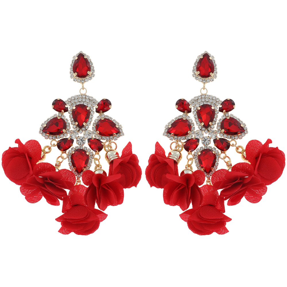 Large Floral Chandelier Drop Earrings With Crystal Stone Base - Boho Statement Jewelry