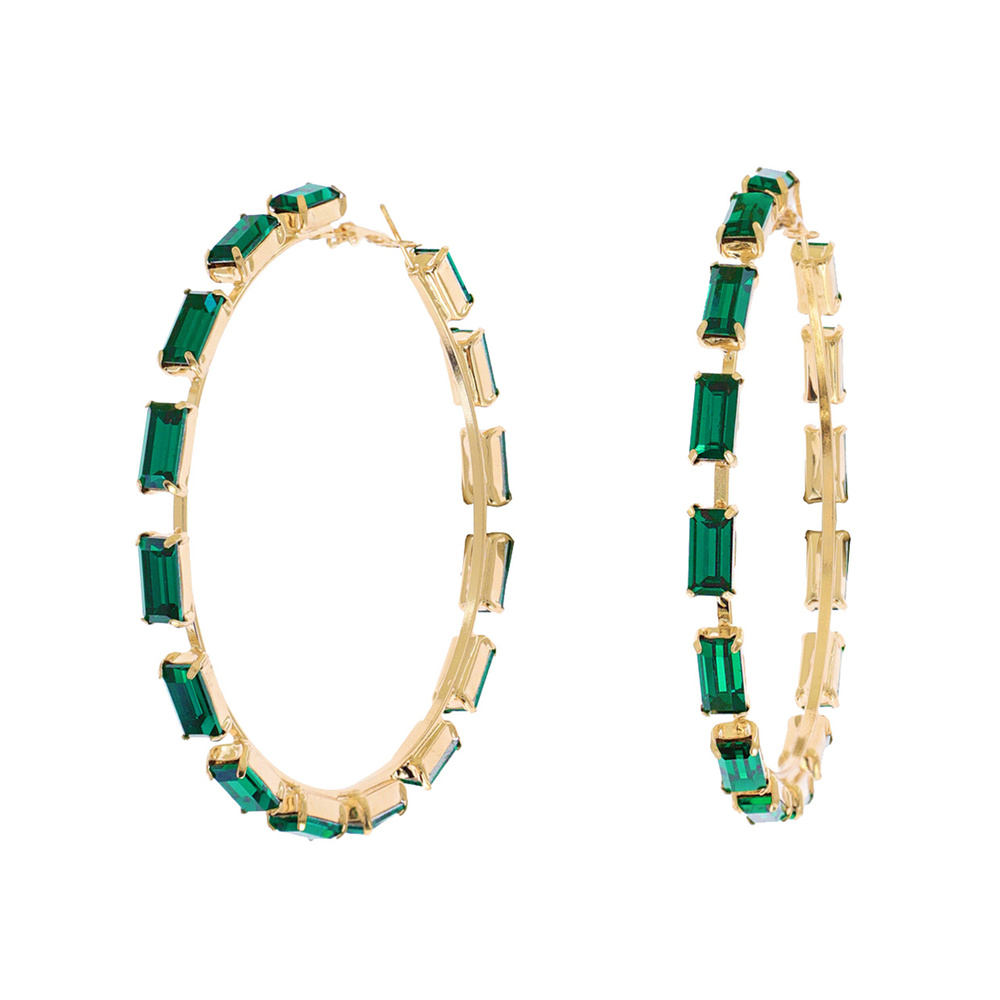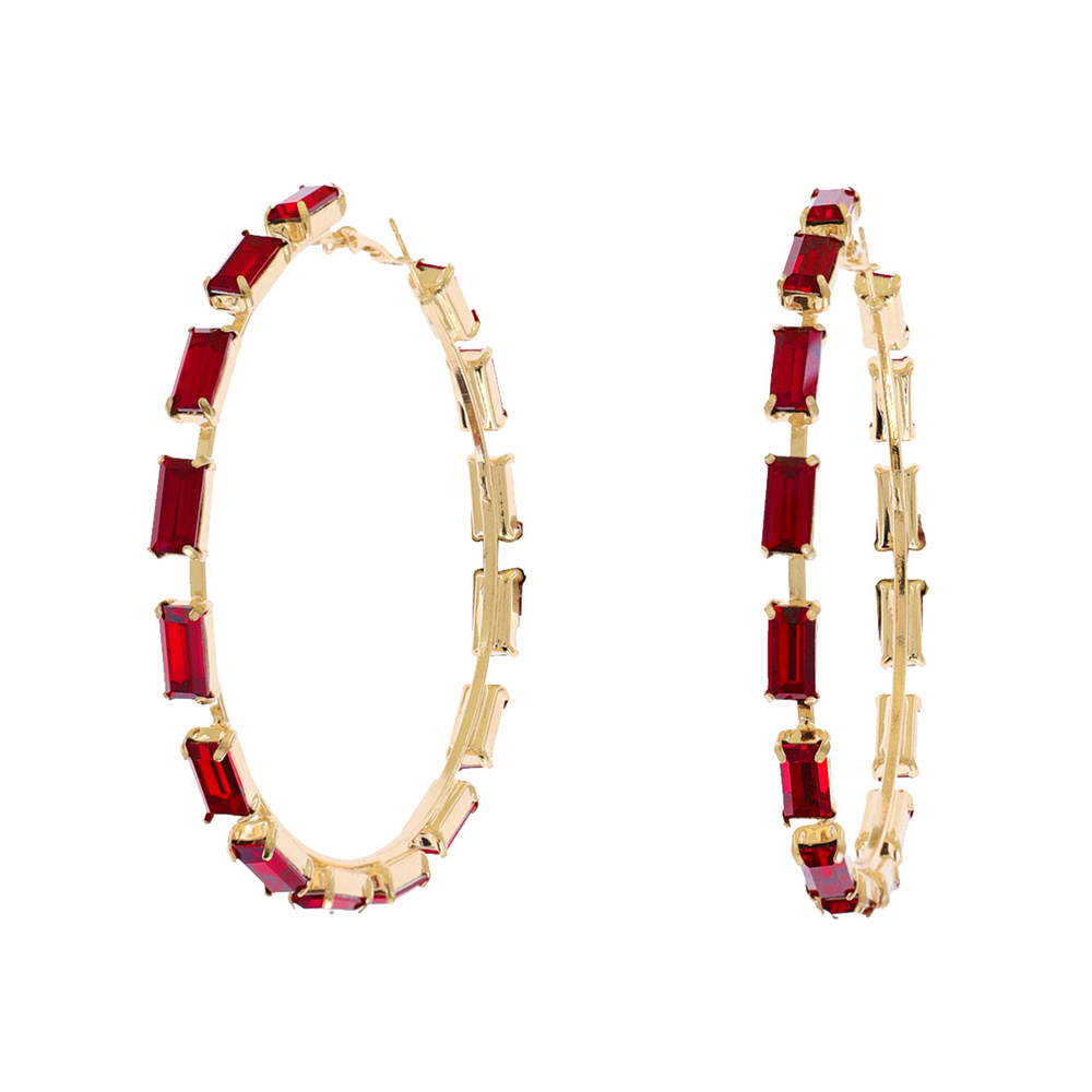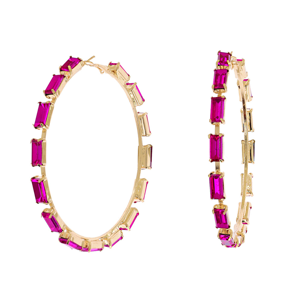 80MM CRYSTAL CLUSTER HOOP EARRINGS IN GOLD AND SILVER TONE METAL