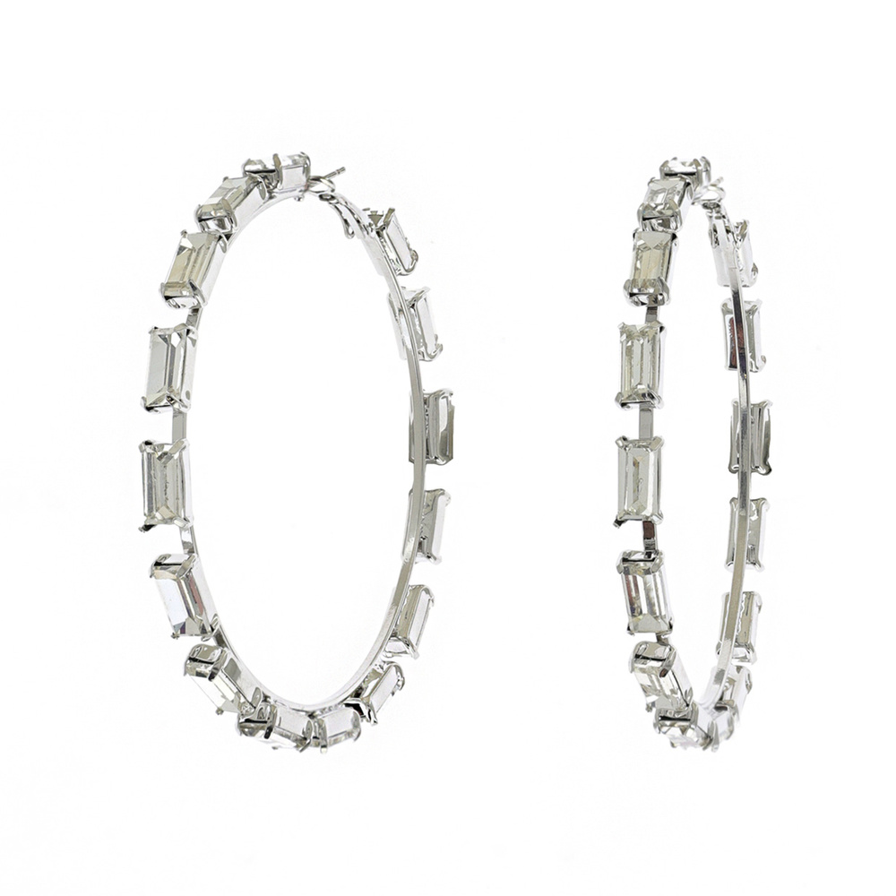 80mm Crystal Cluster Hoop Earrings In Gold And Silver Tone Metal