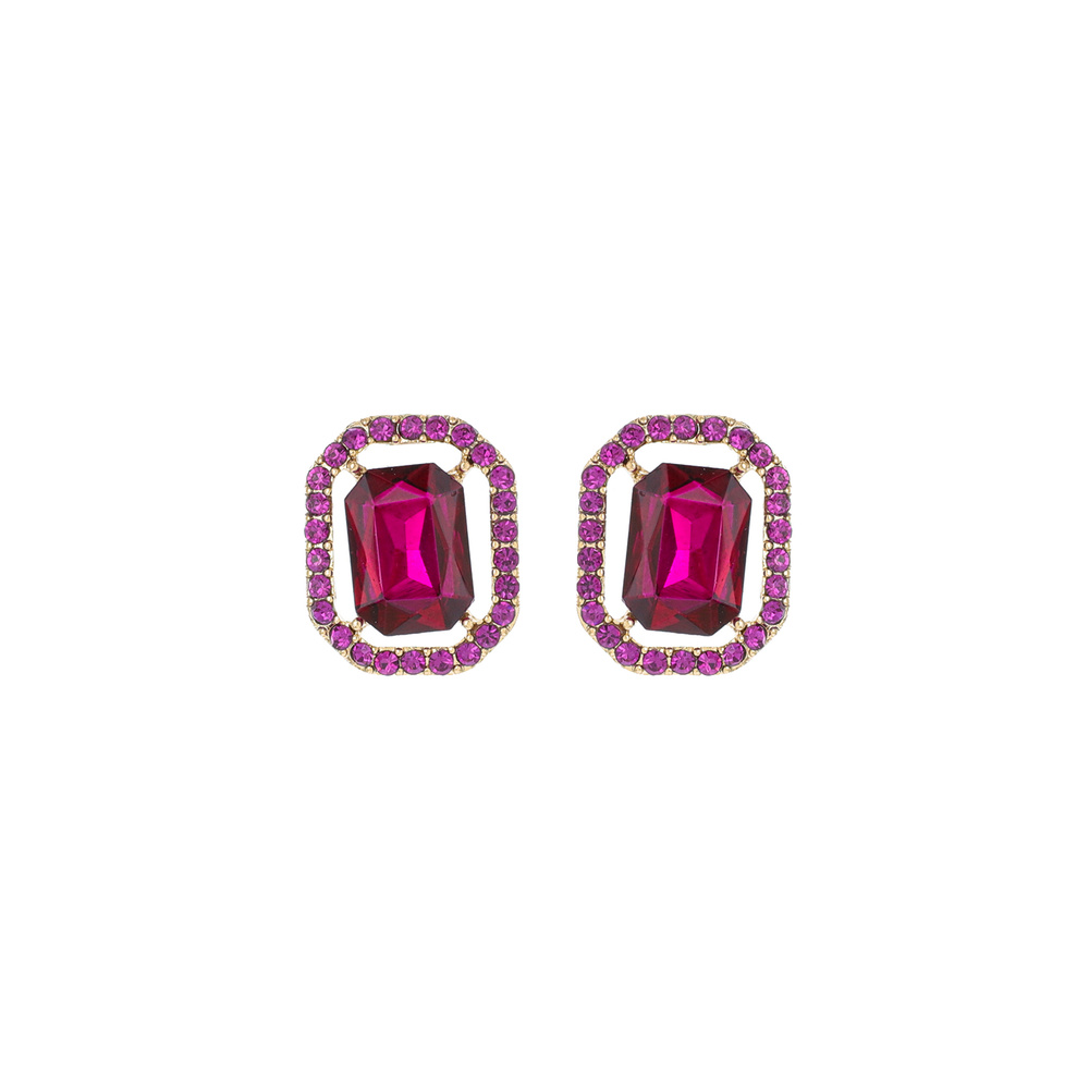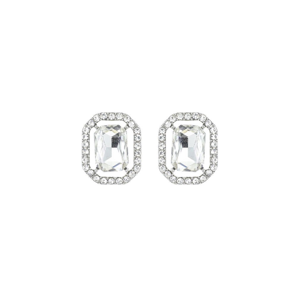 CRYSTAL RHINESTONE OCTAGON CUT HALO DROP EARRINGS