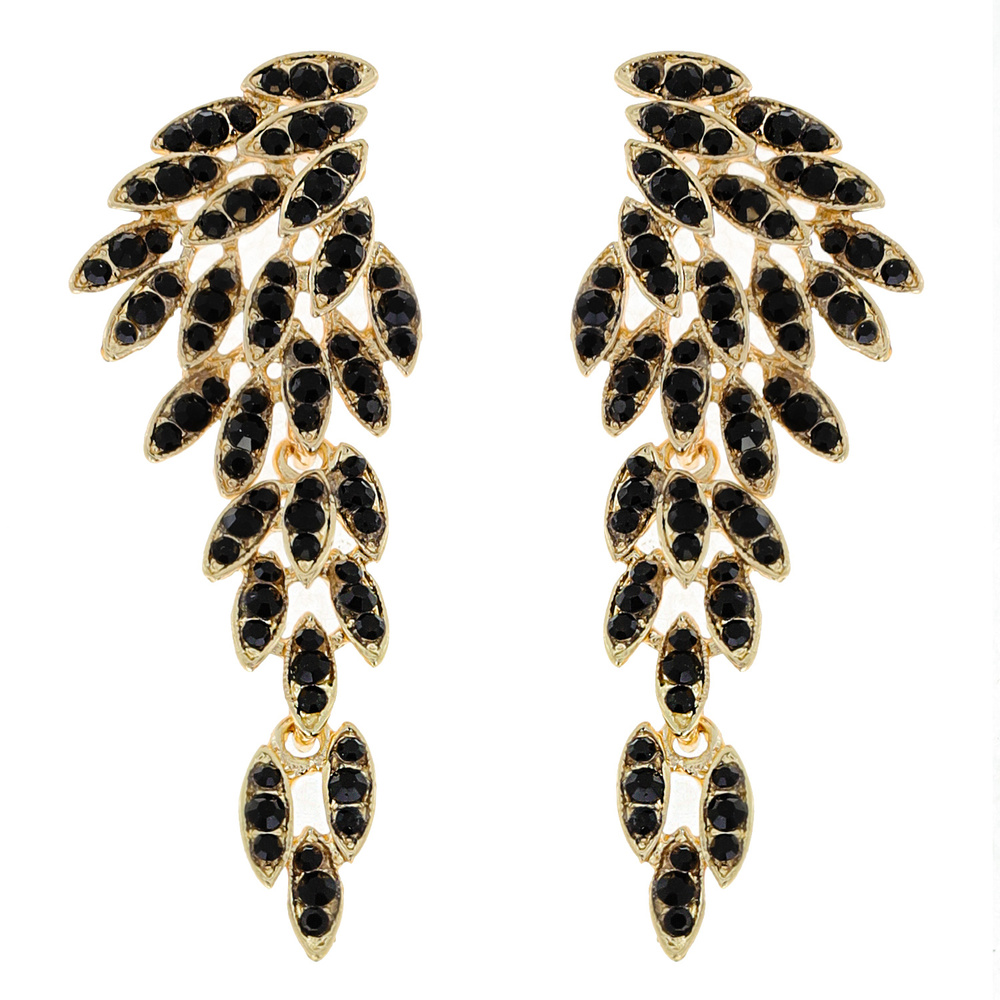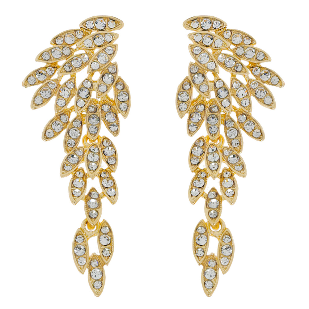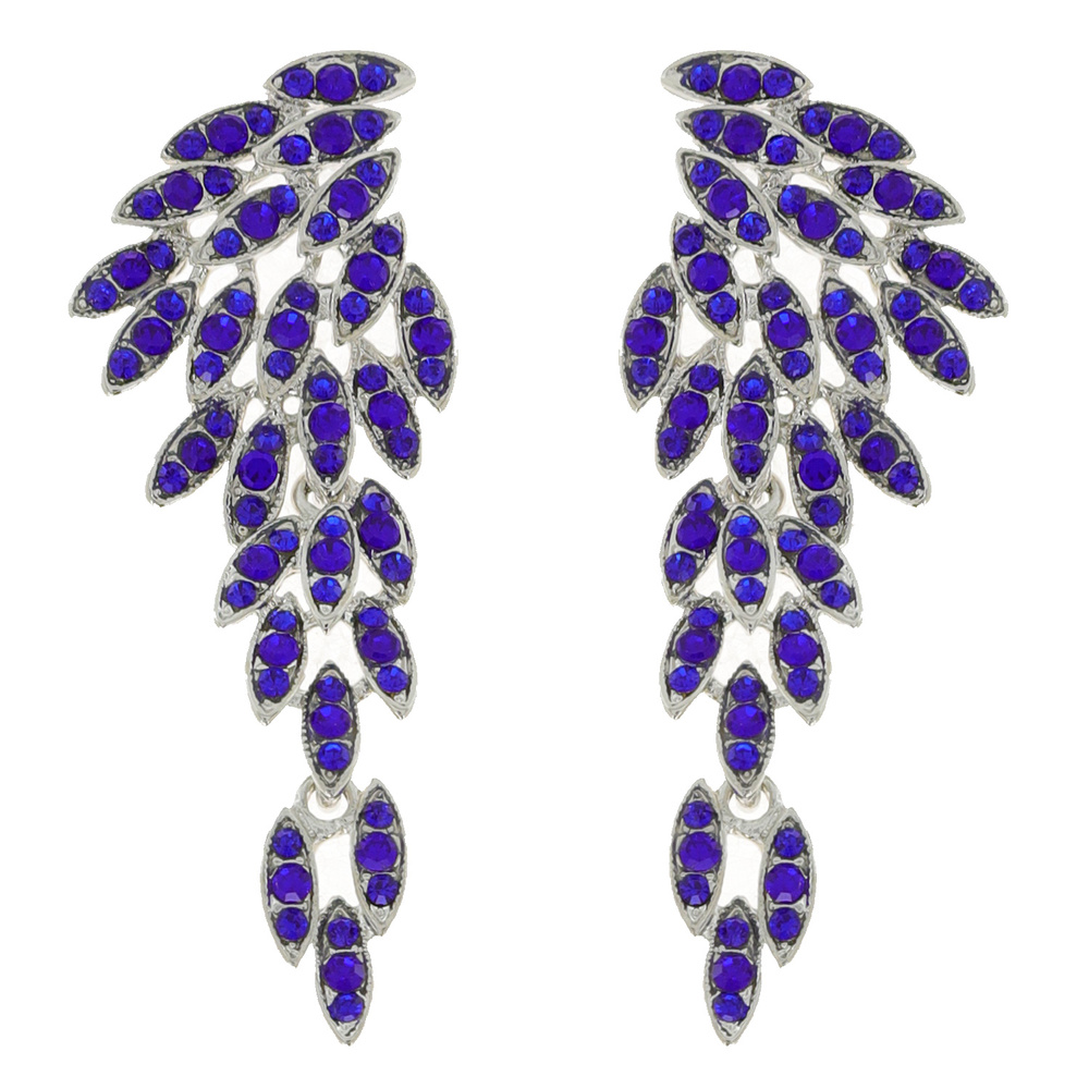 WING SHAPED LONG DROP CRYSTAL CLUSTER EARRINGS