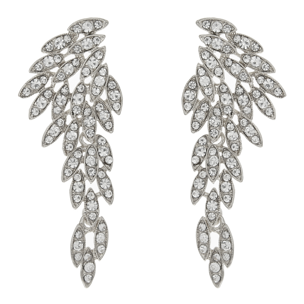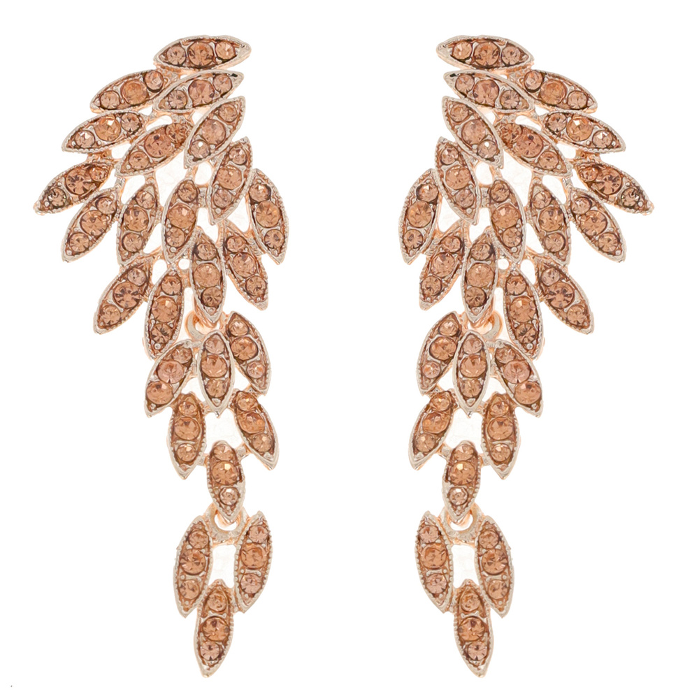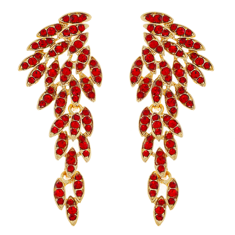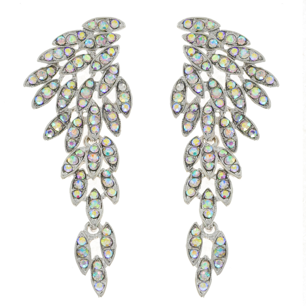 Wing Shaped Long Drop Crystal Cluster Earrings