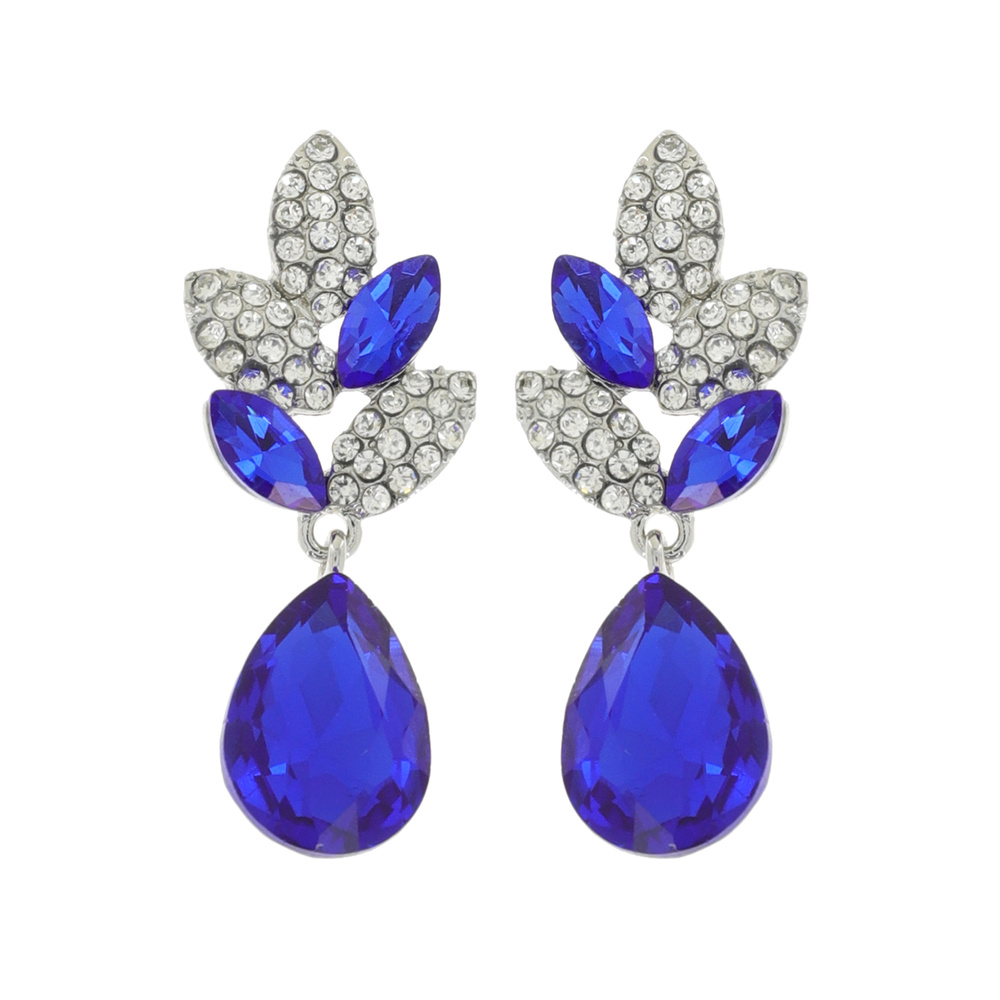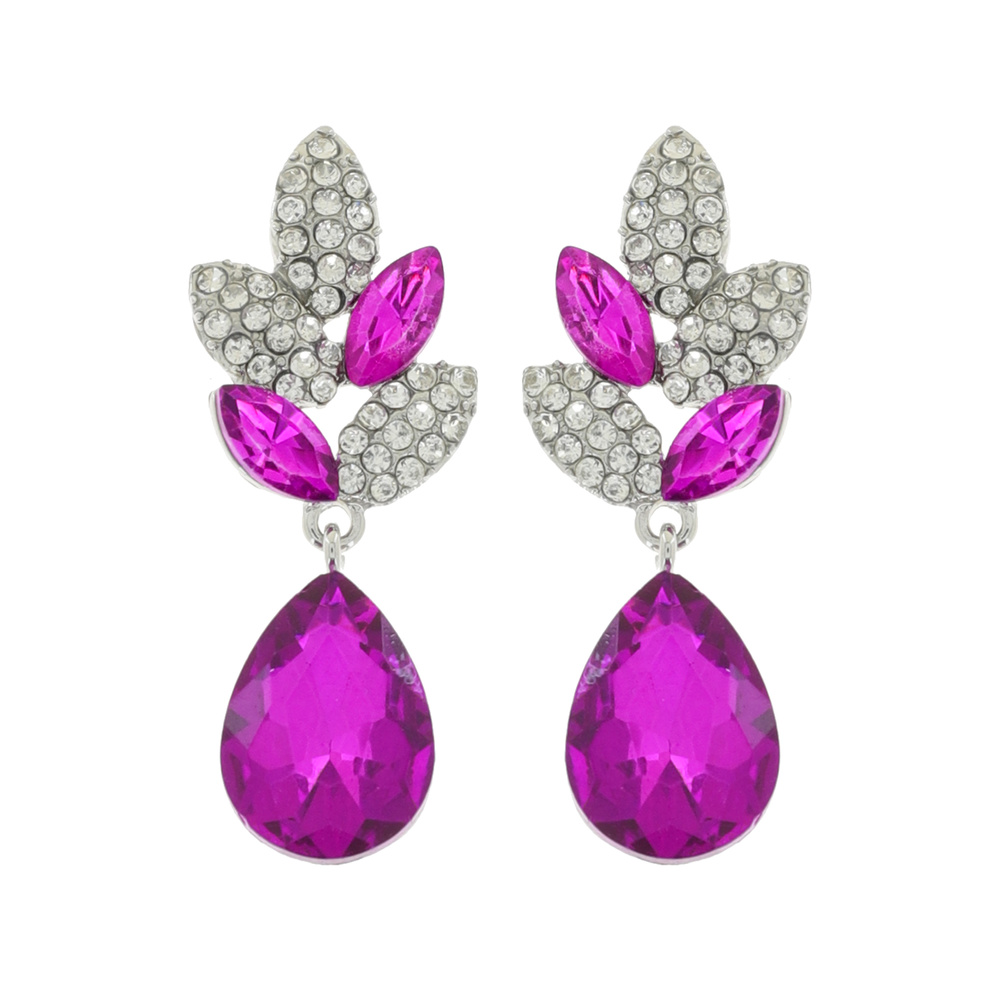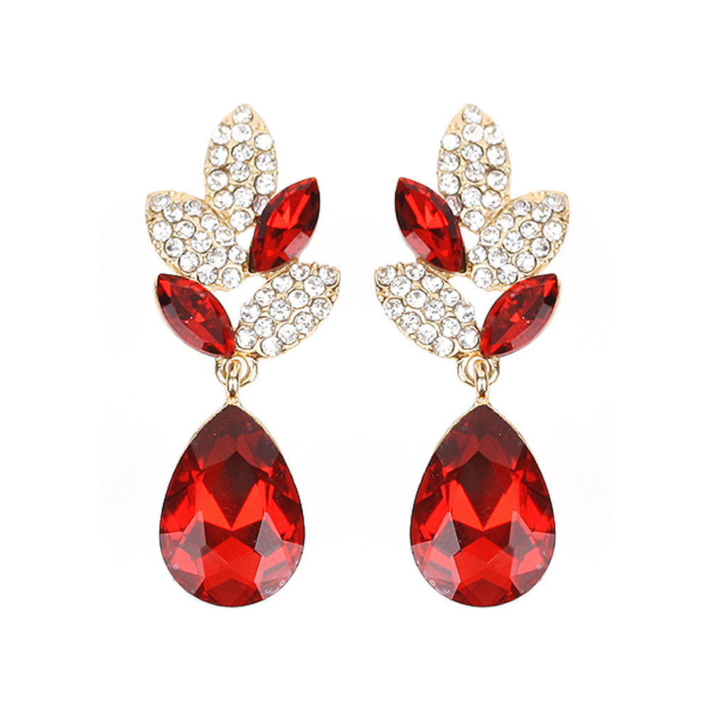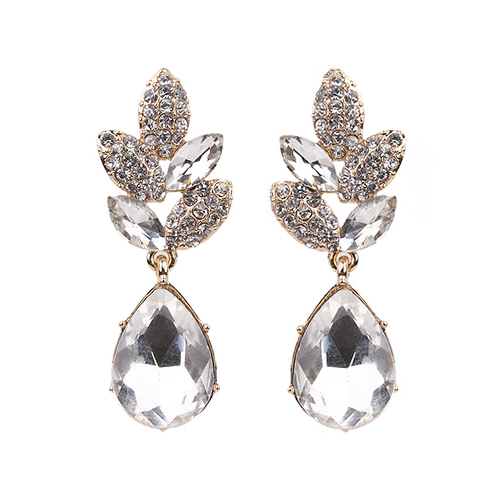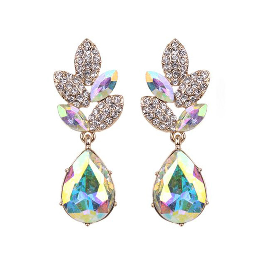 2-TIER CRYSTAL RHINESTONE LEAF ACCENT DANGLE AND DROP EARRINGS