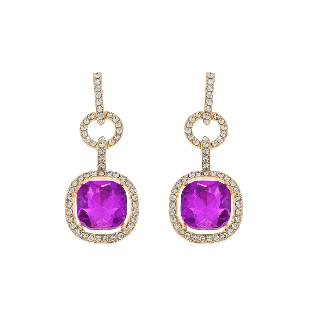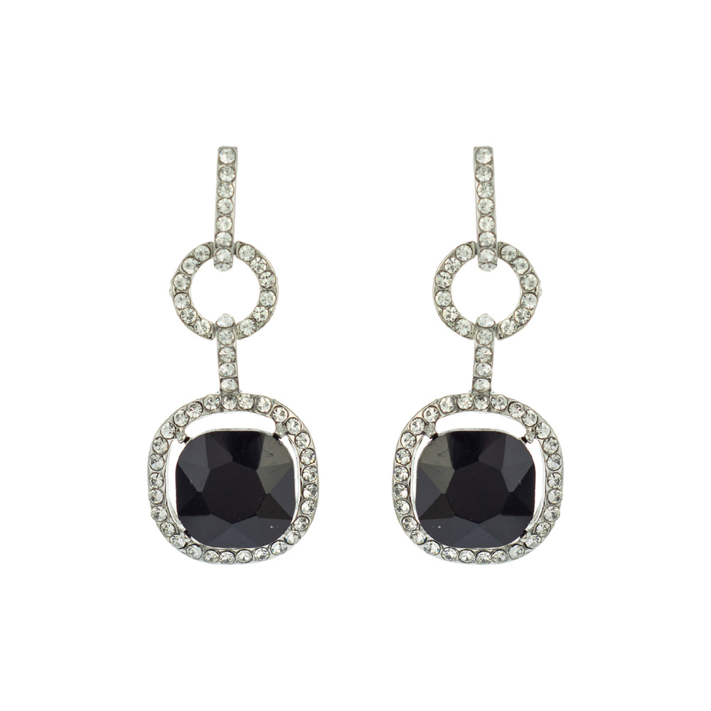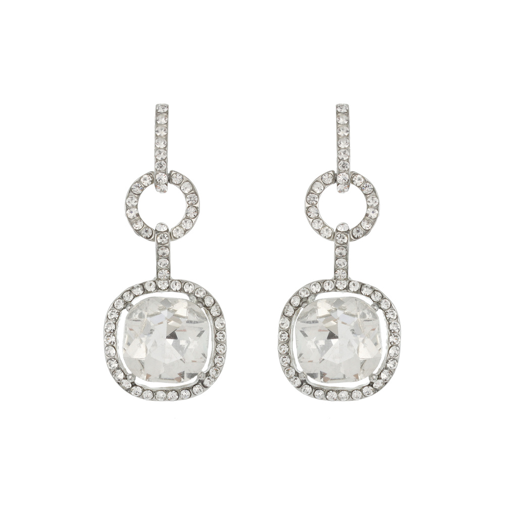 Crystal Rhinestone Square Cut Link Drop Earrings
