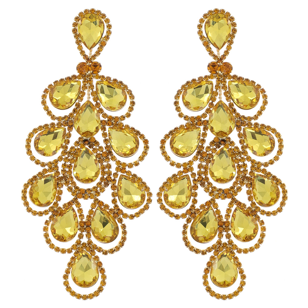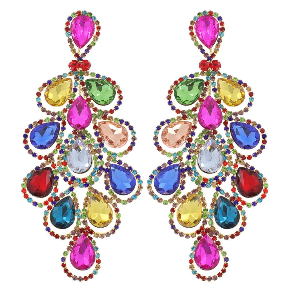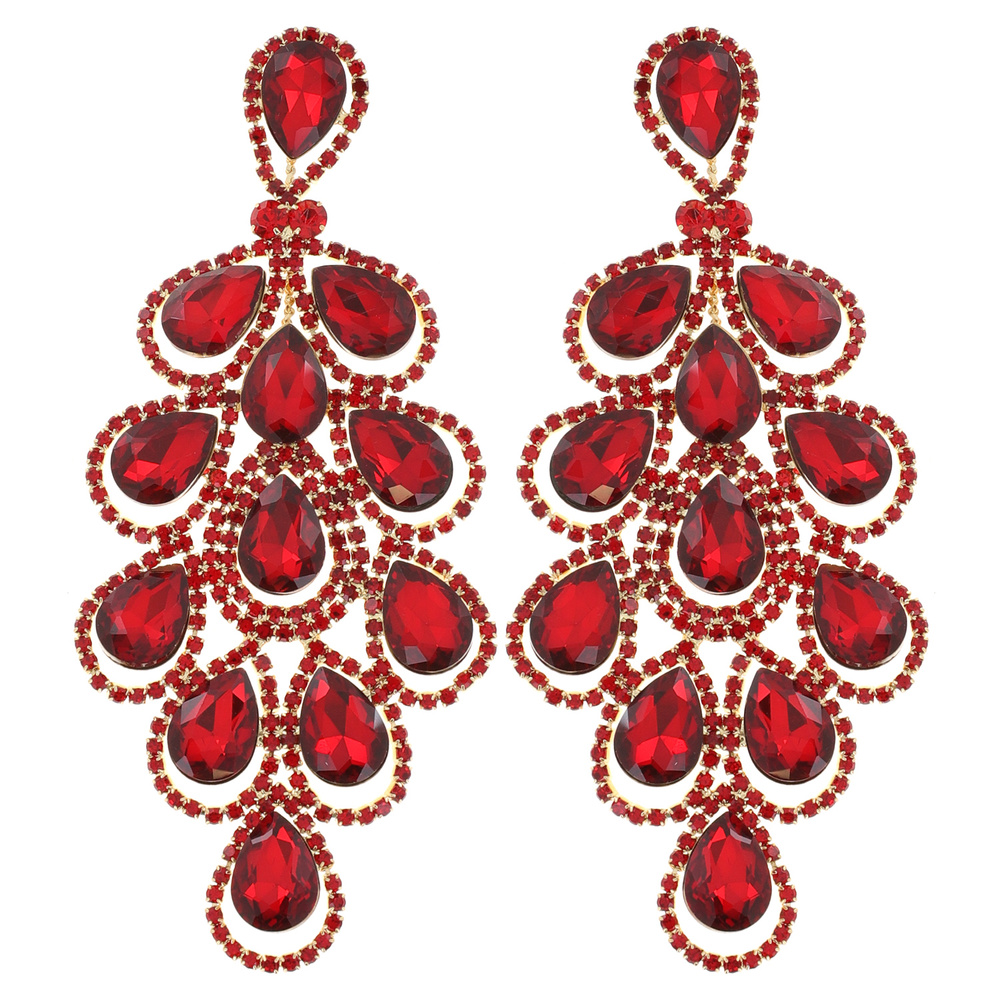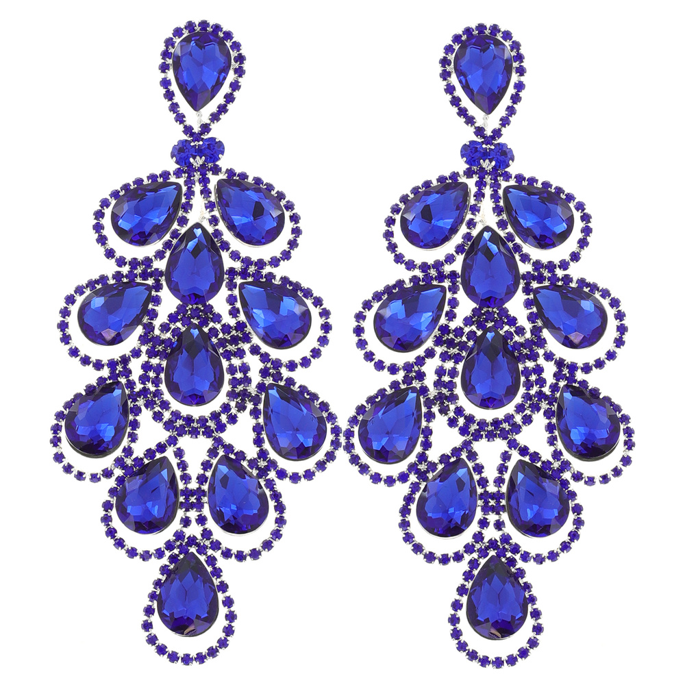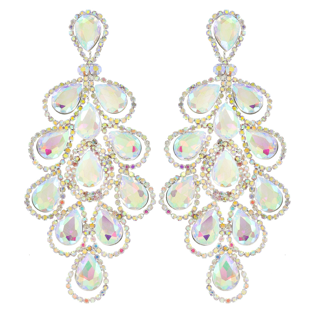 Large 2-tier Crystal Rhinestone Pave Teardrop Cluster Long Drop Earrings