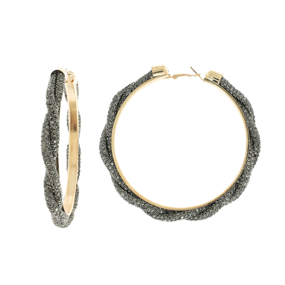 FASHION RHINESTONE BRAIDED HOOP EARRINGS