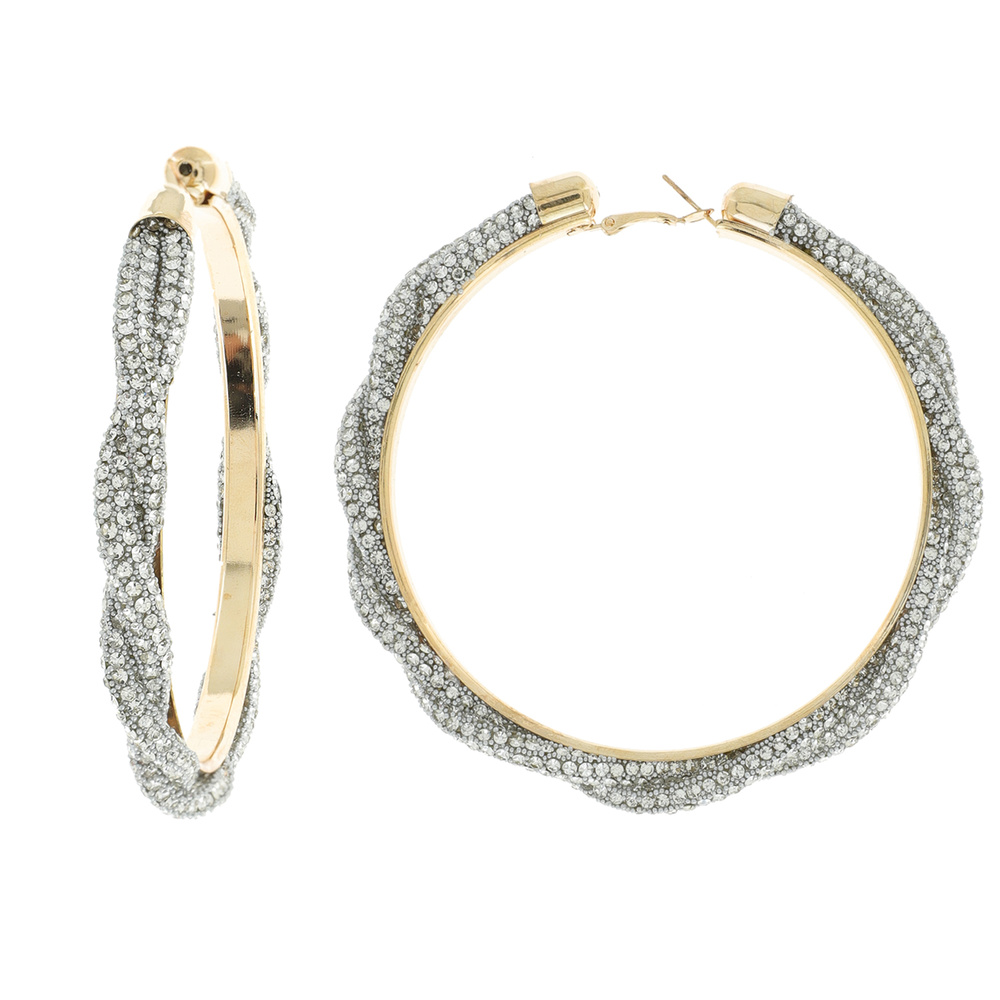 80MM FASHION RHINESTONE BRAIDED HOOP EARRINGS