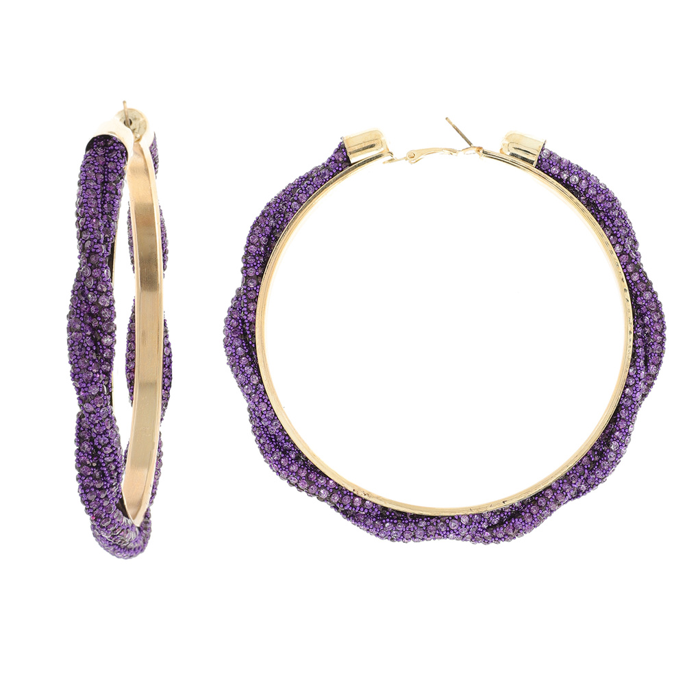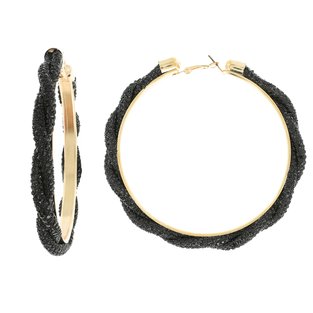 80mm Fashion Rhinestone Braided Hoop Earrings