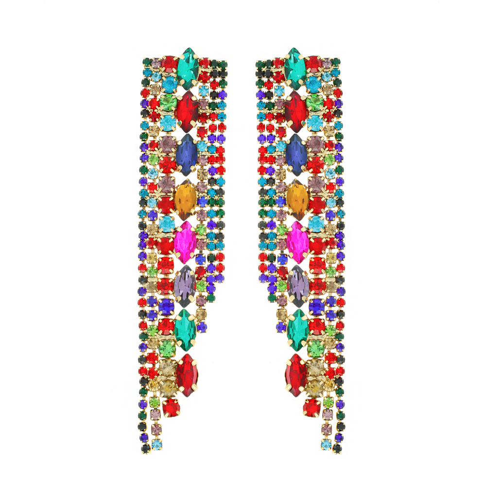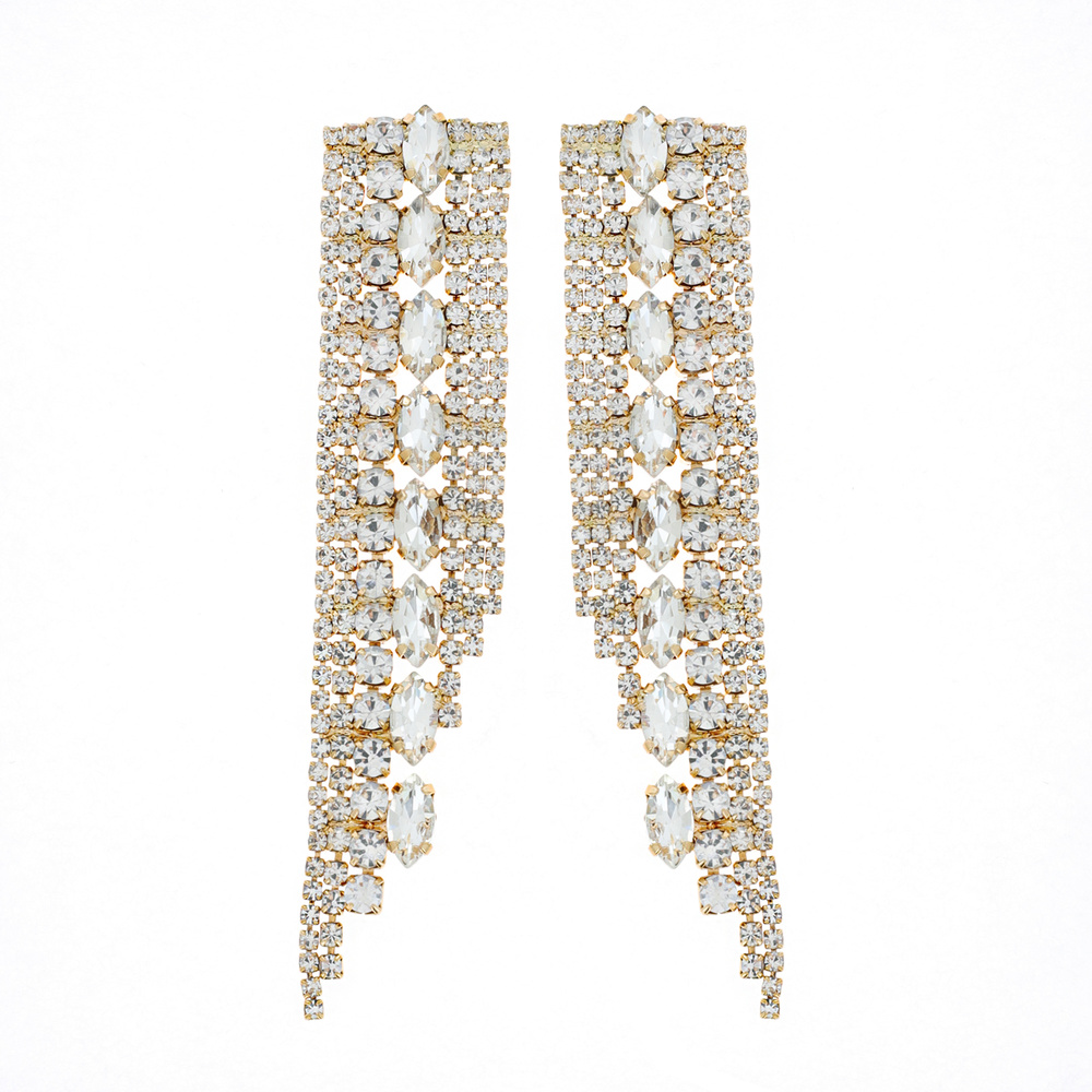 STATEMENT LARGE CRYSTAL RHINESTONE TASSEL LONG DROP EARRINGS