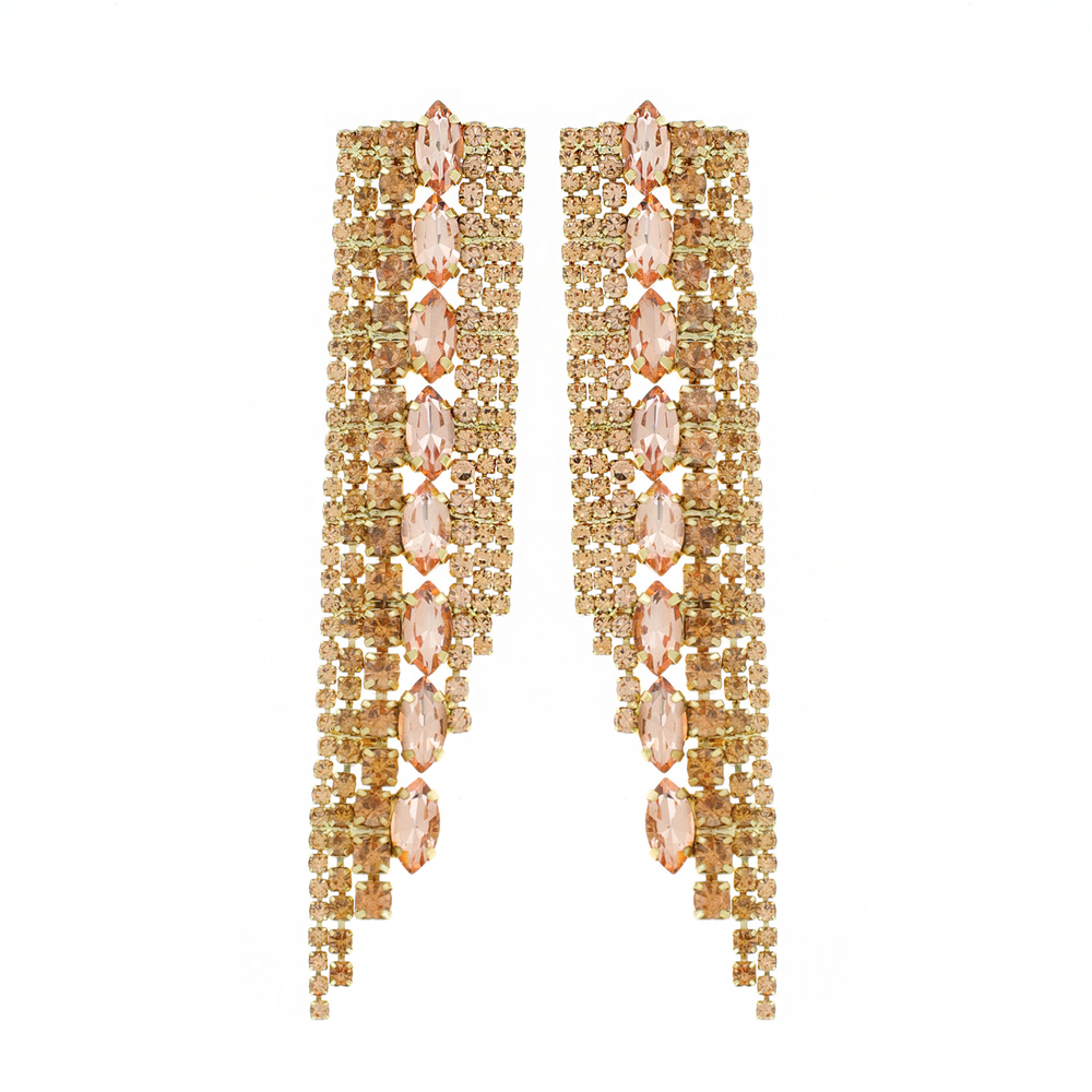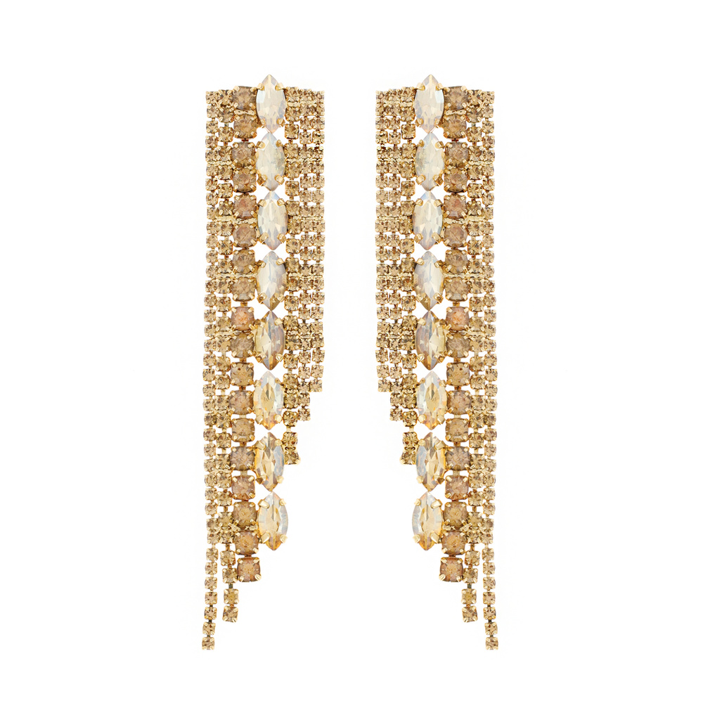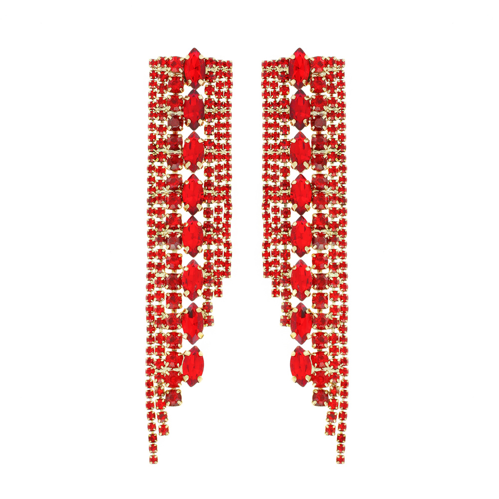 Statement Large Crystal Rhinestone Tassel Long Drop Earrings