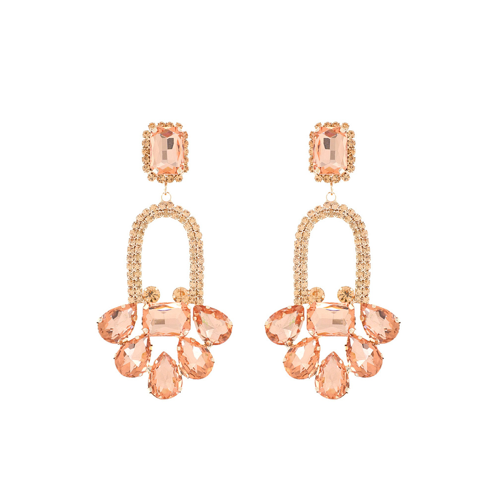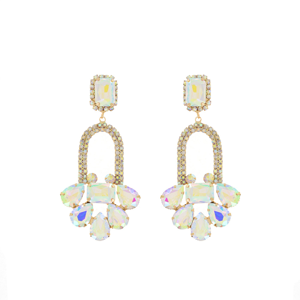CRYSTAL GEM ARCH CLUSTER CHANDELIER LONG DROP EARRINGS