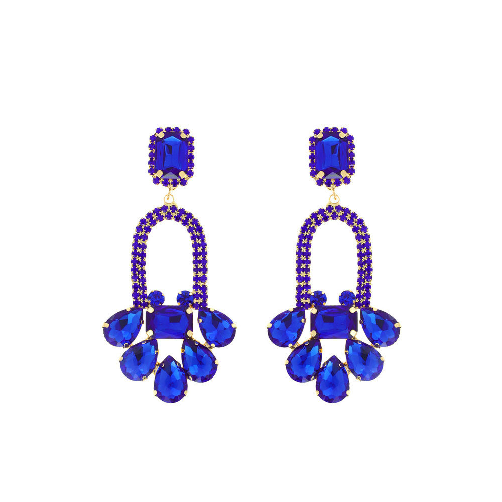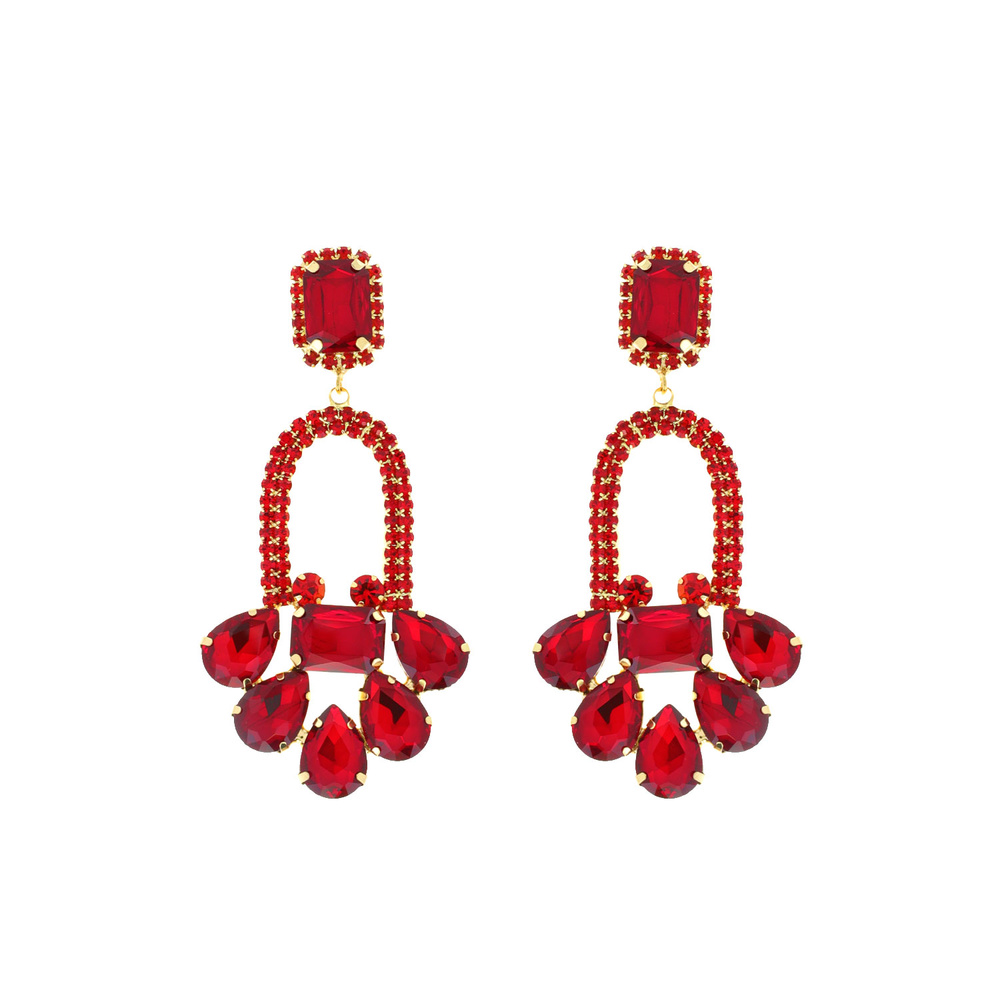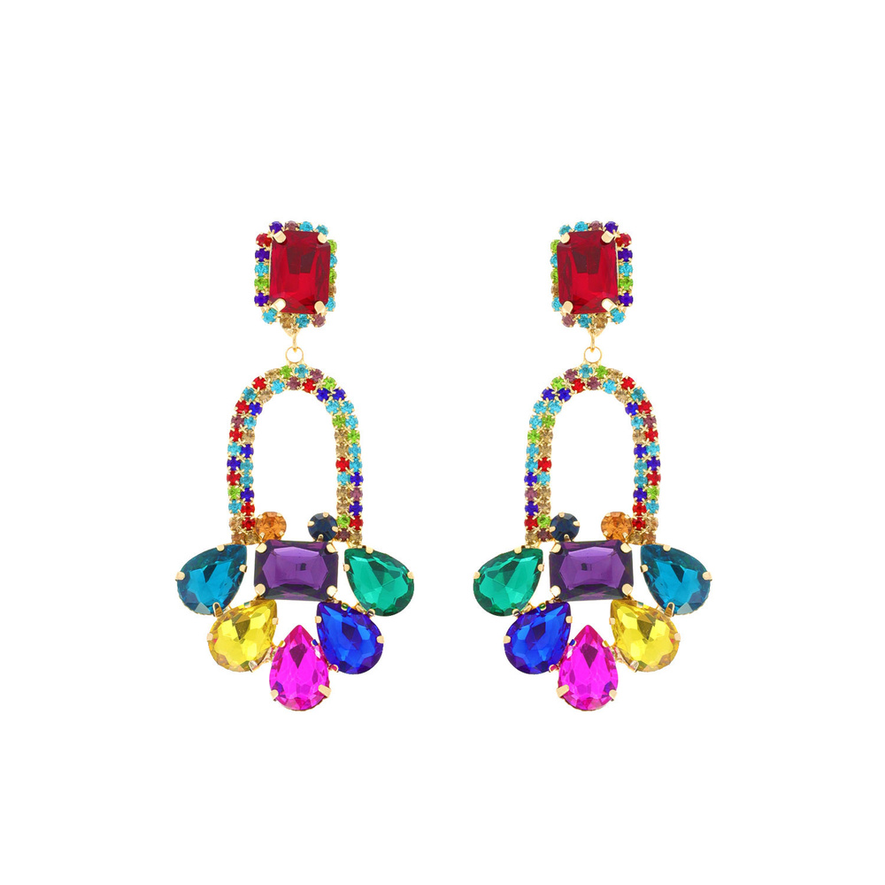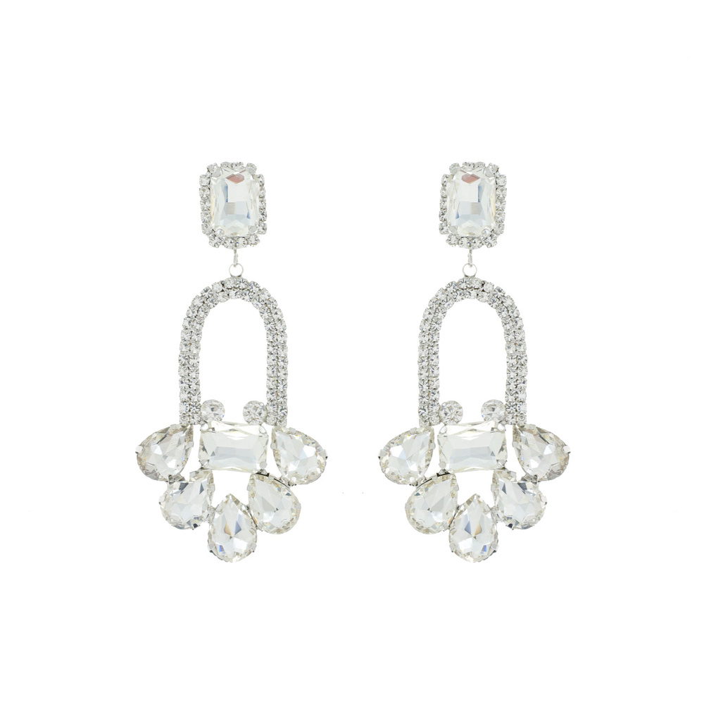Crystal Gem Arch Cluster Chandelier Long Drop Earrings