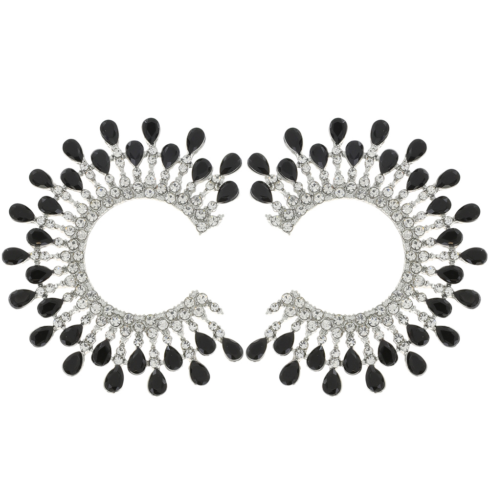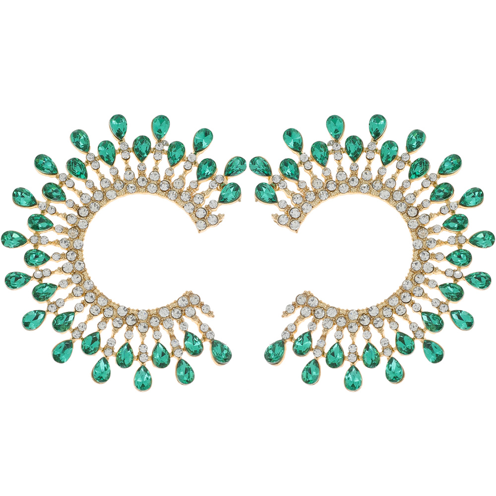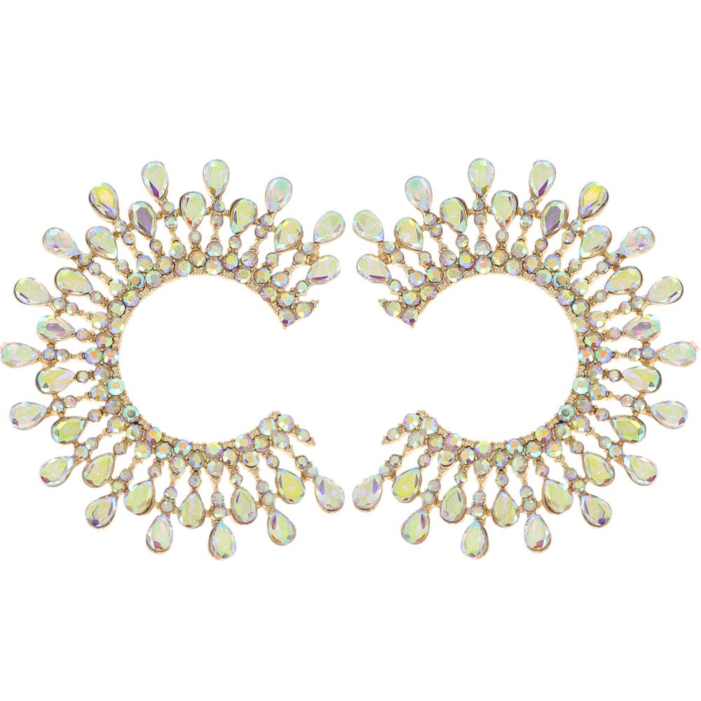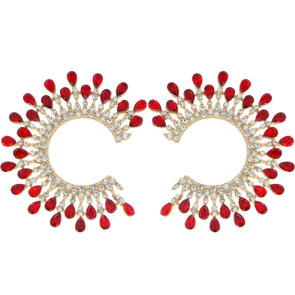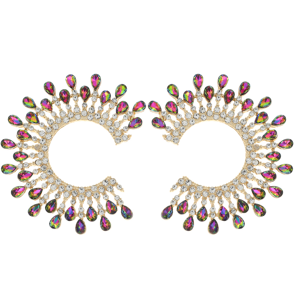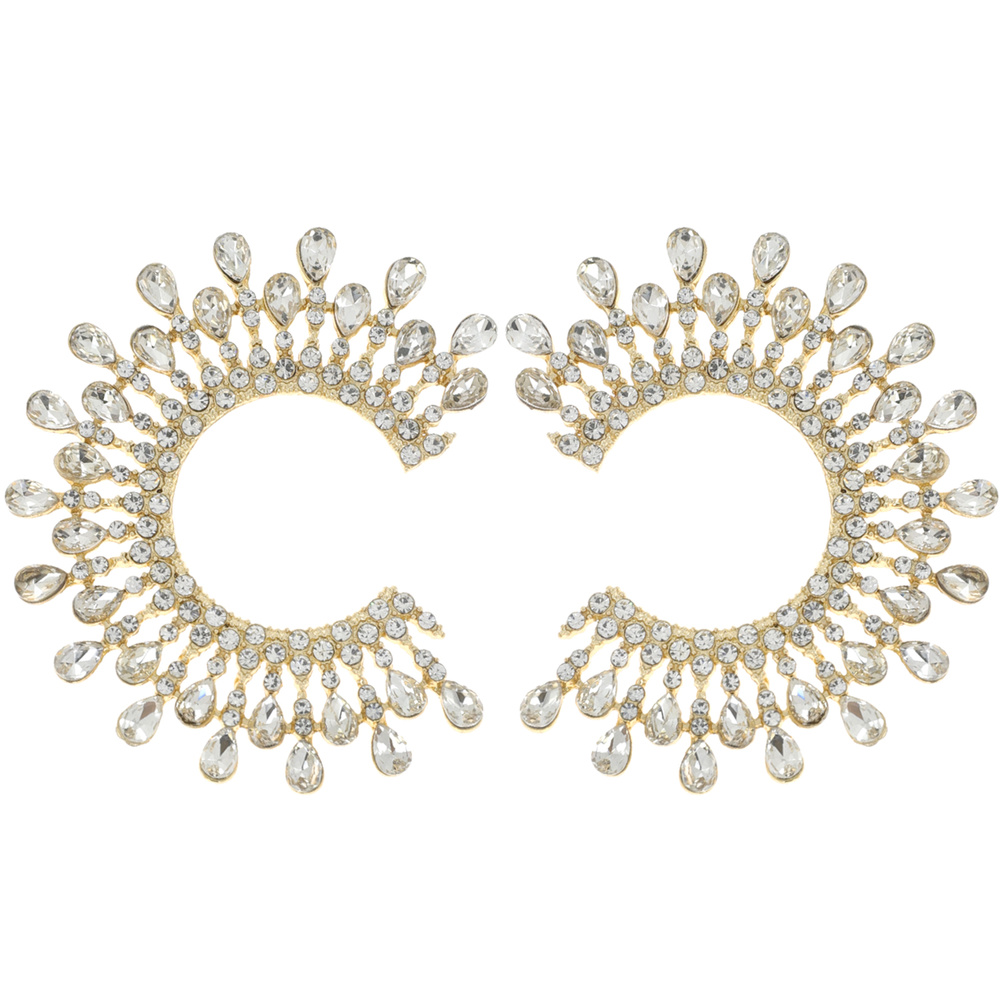 TEARDROP SUNBURST OPEN CIRCLE CRYSTAL STUD EARRINGS