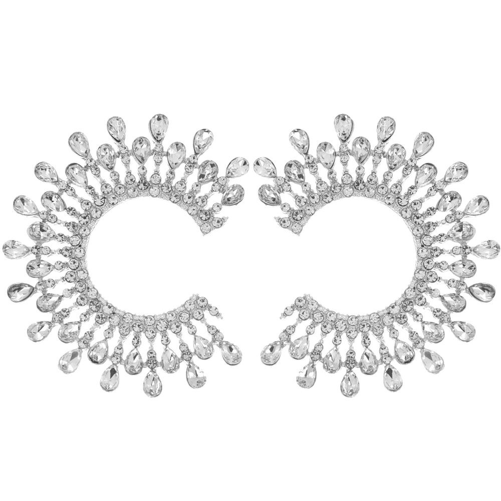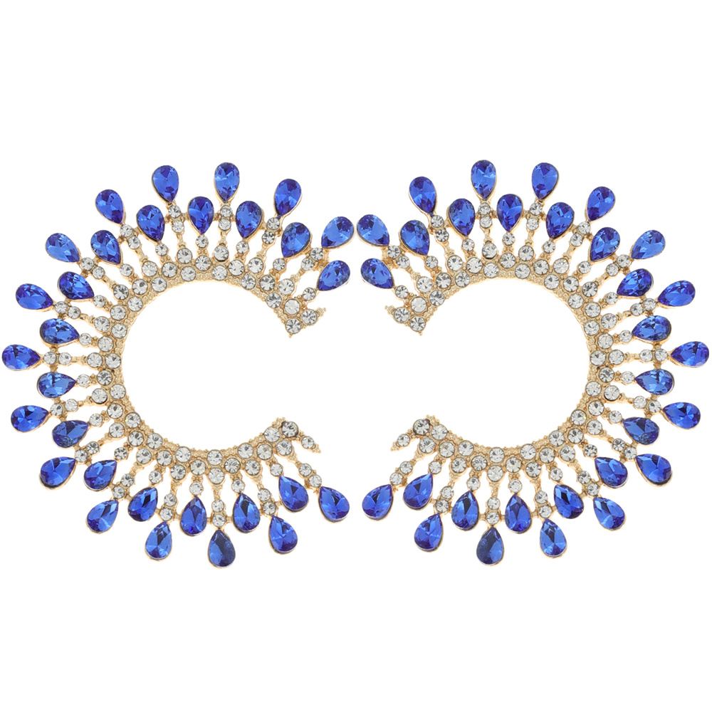 Teardrop Sunburst Open Circle Crystal Stud Earrings