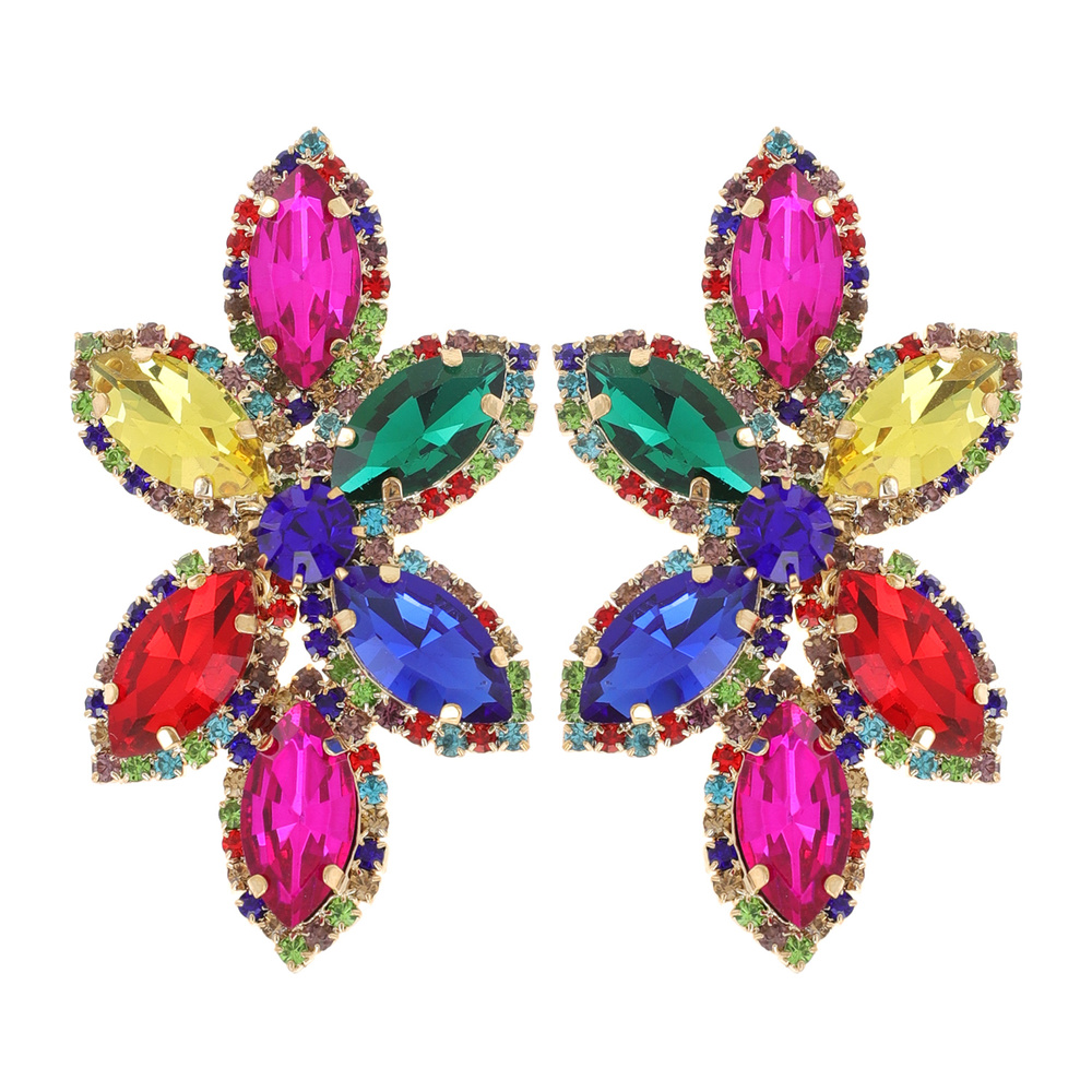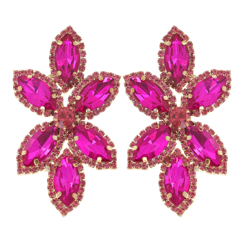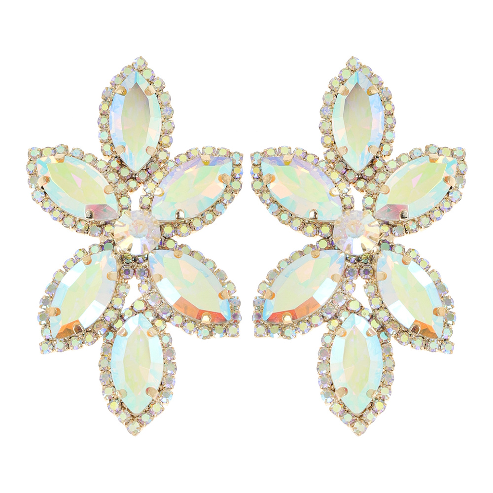 Crystal Pave Floral Marquise Stone Cluster Earrings