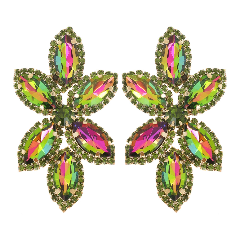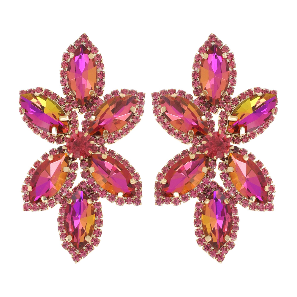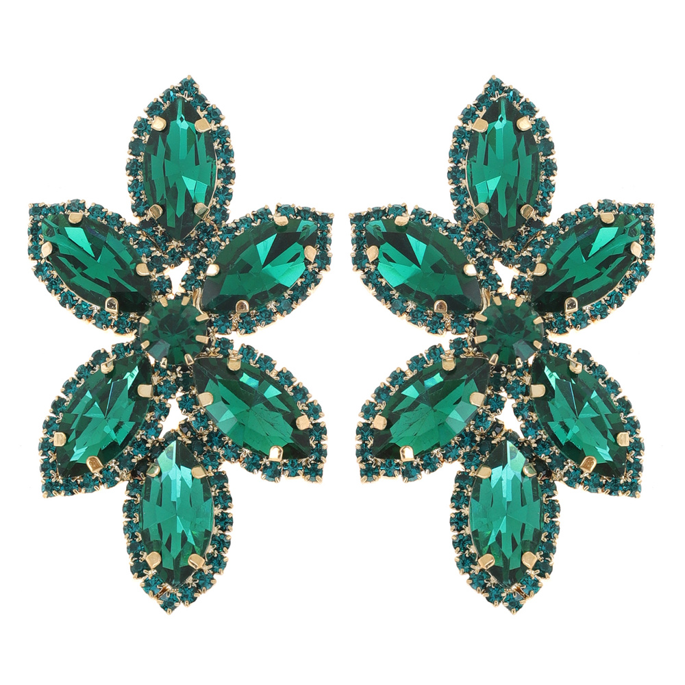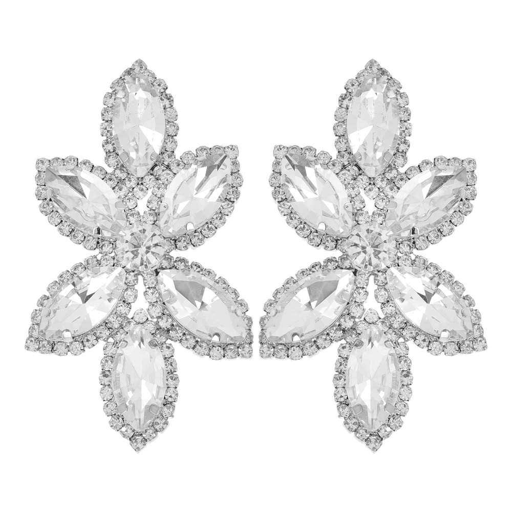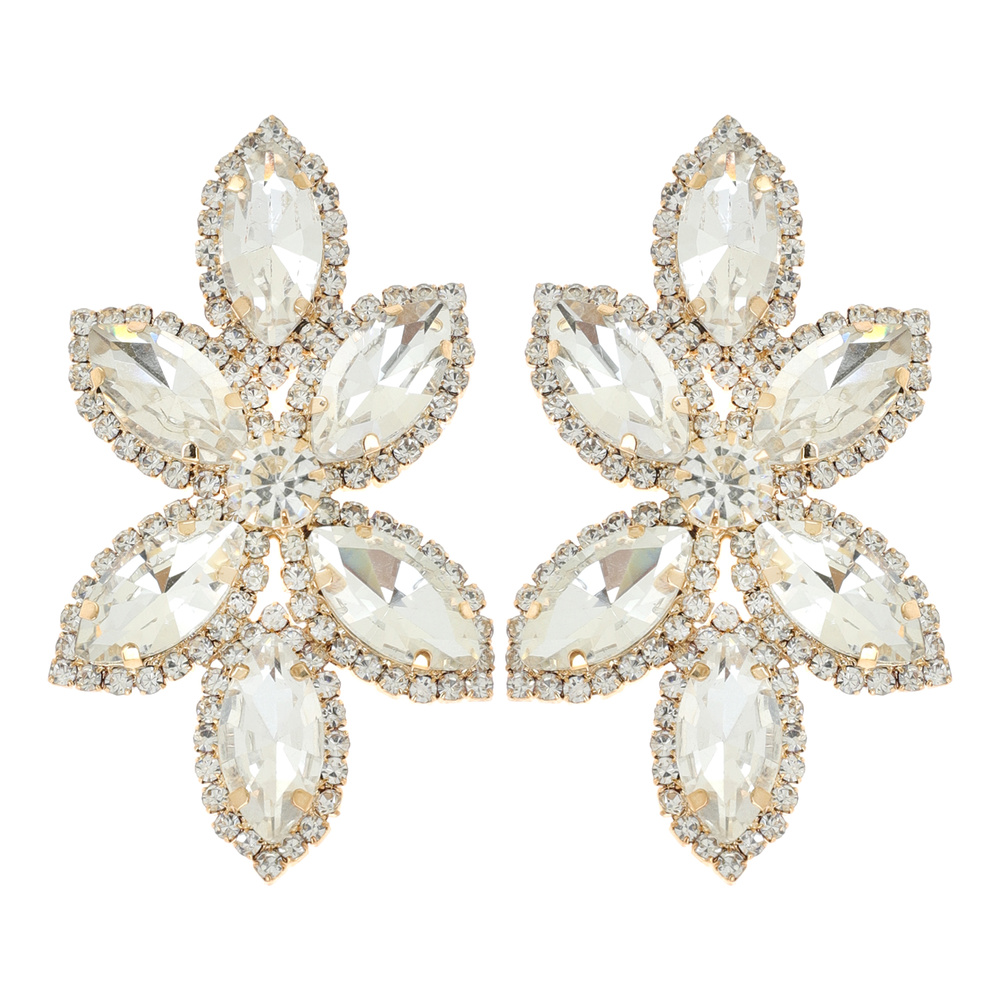 CRYSTAL PAVE FLORAL MARQUISE STONE CLUSTER EARRINGS