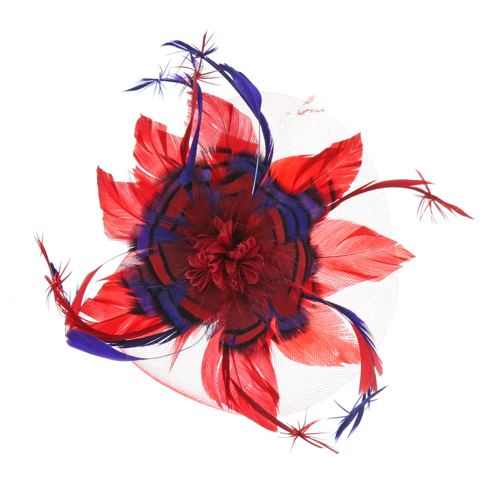 Kh2700rp Red Hatter Feather Hair Comb Fascinator