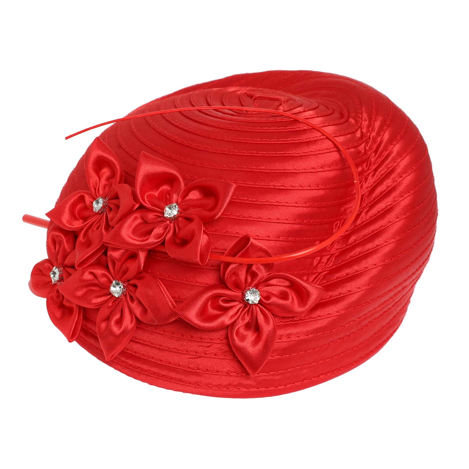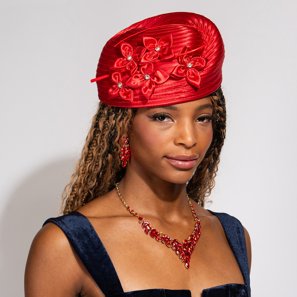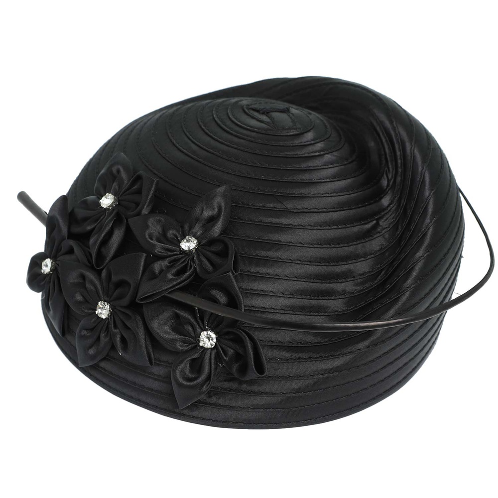 FLORAL METALLIC CRYSTAL RHINESTONE DRESSY PILL BOX BRAID HAT