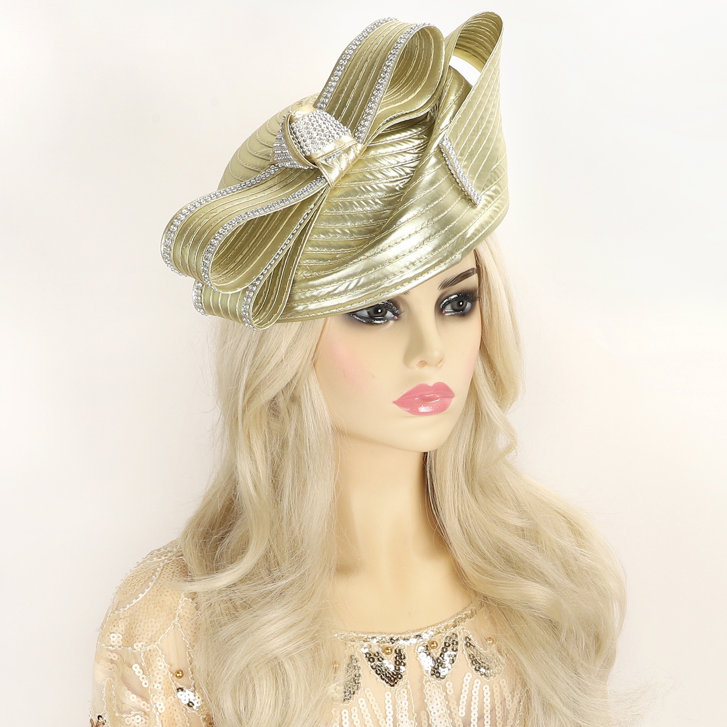 RIBBON METALLIC CRYSTAL RHINESTONE PILL BOX DRESSY BRAID HAT