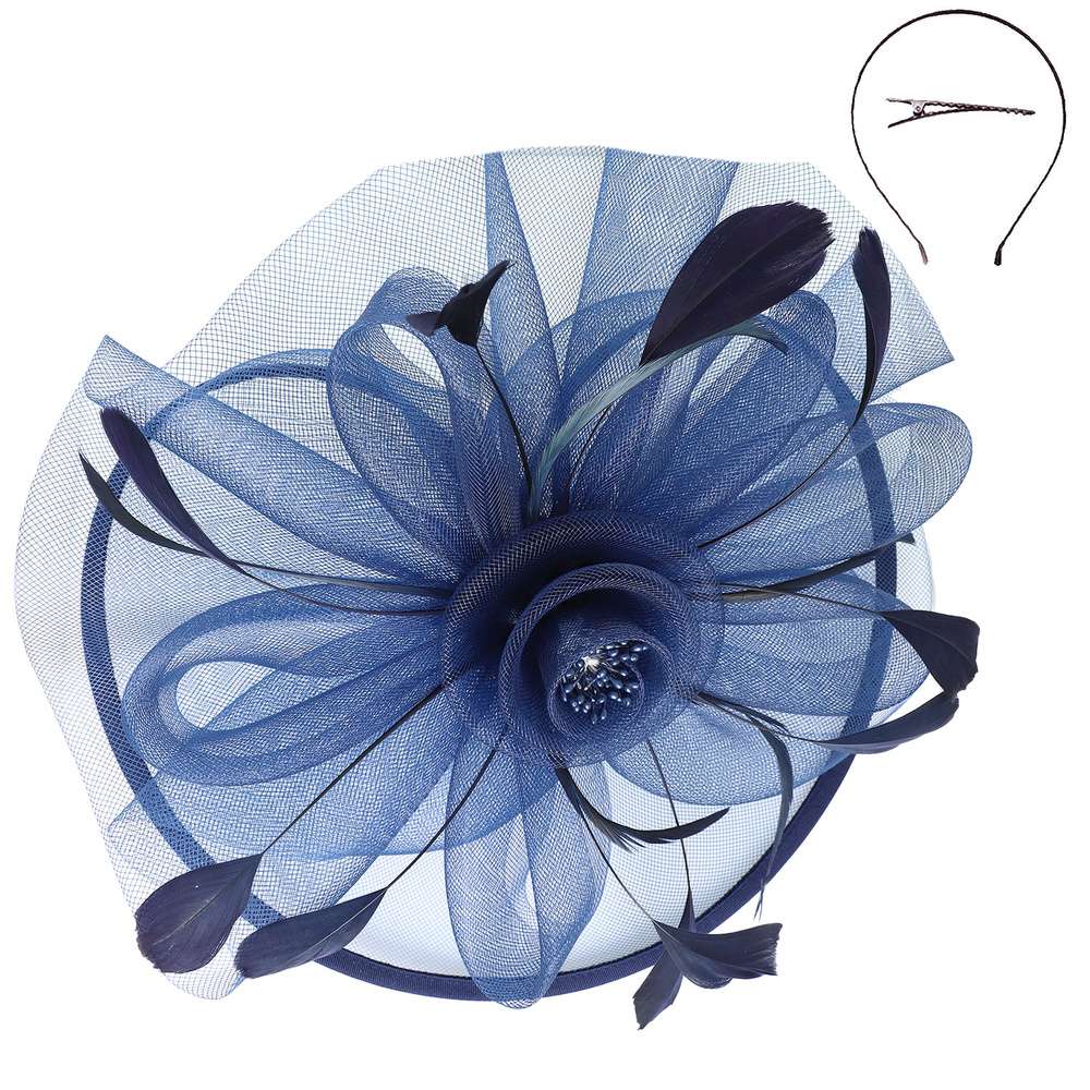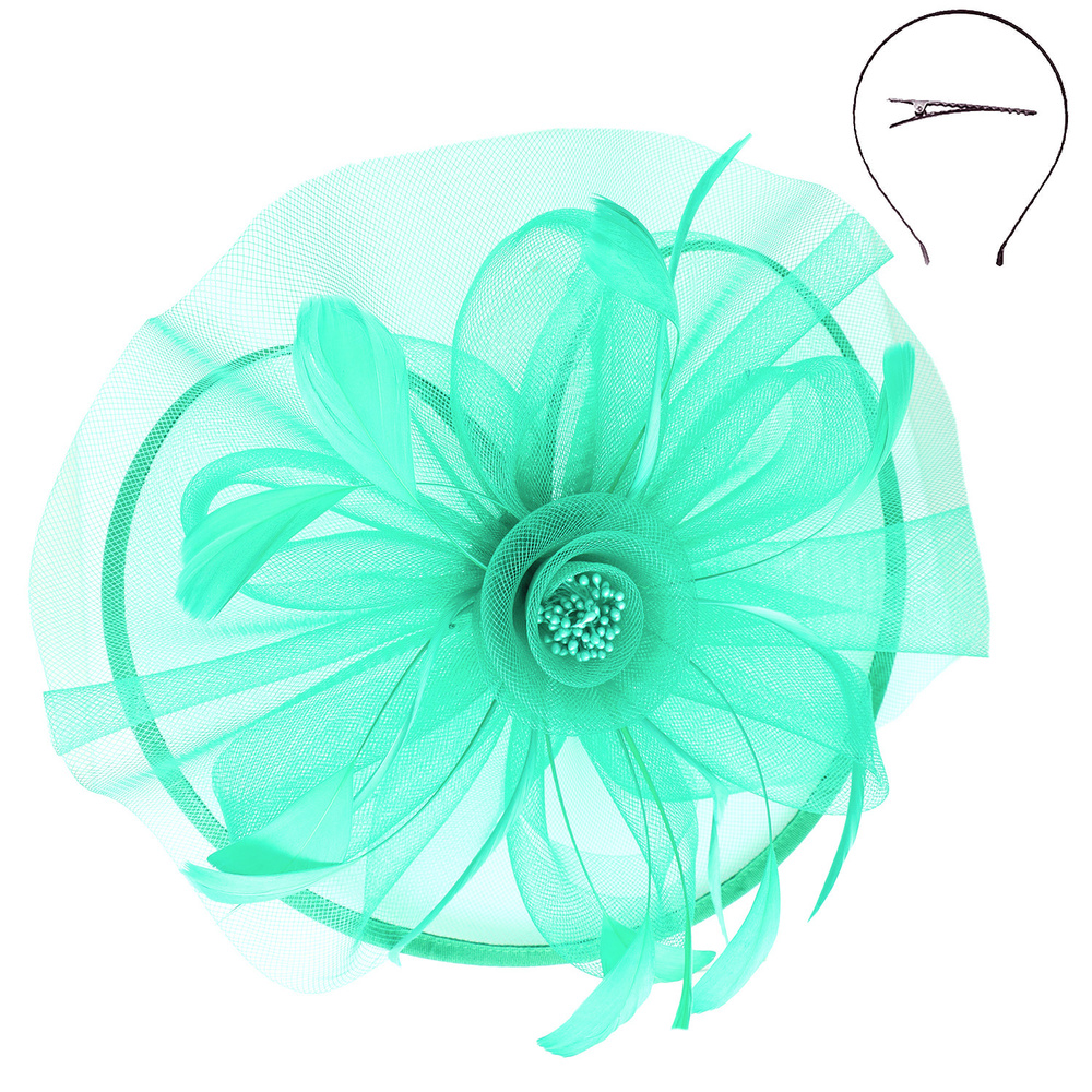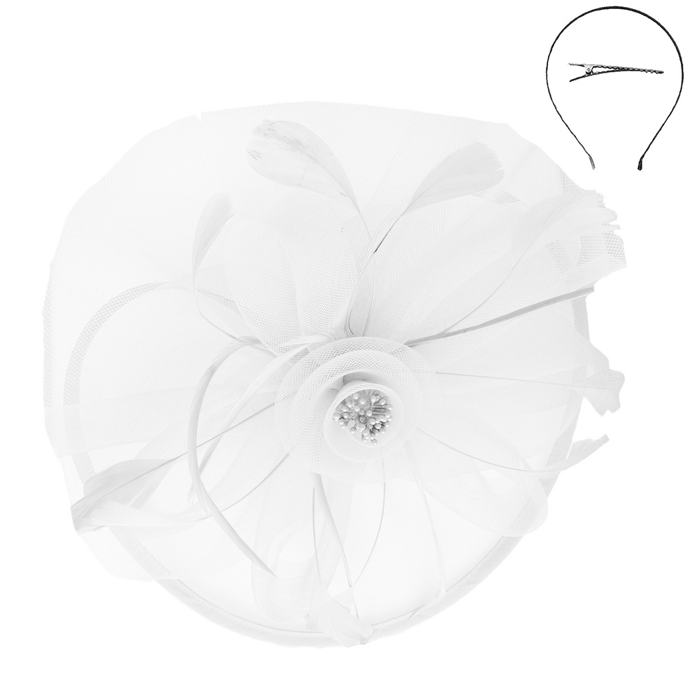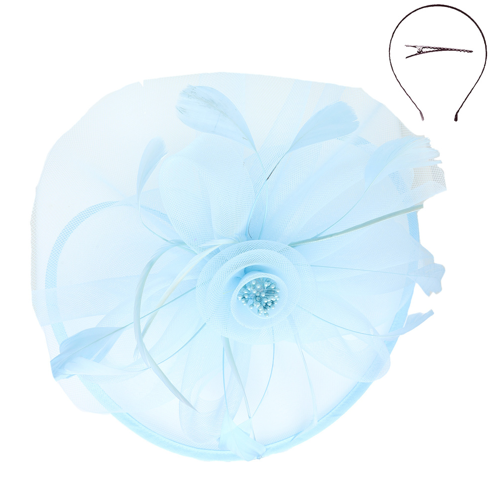 FLORAL ORGANZA MESH RIBBON FEATHERED ACCENT FASCINATOR WITH HEADBAND
