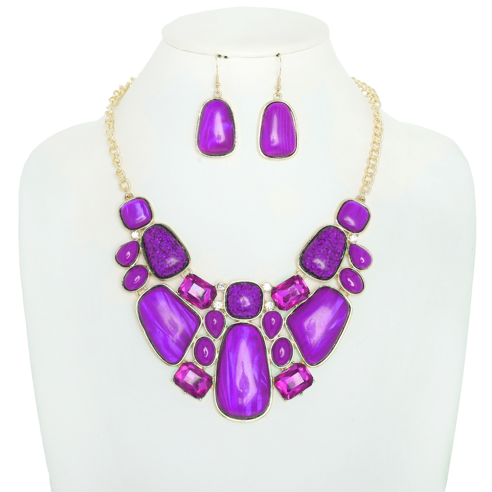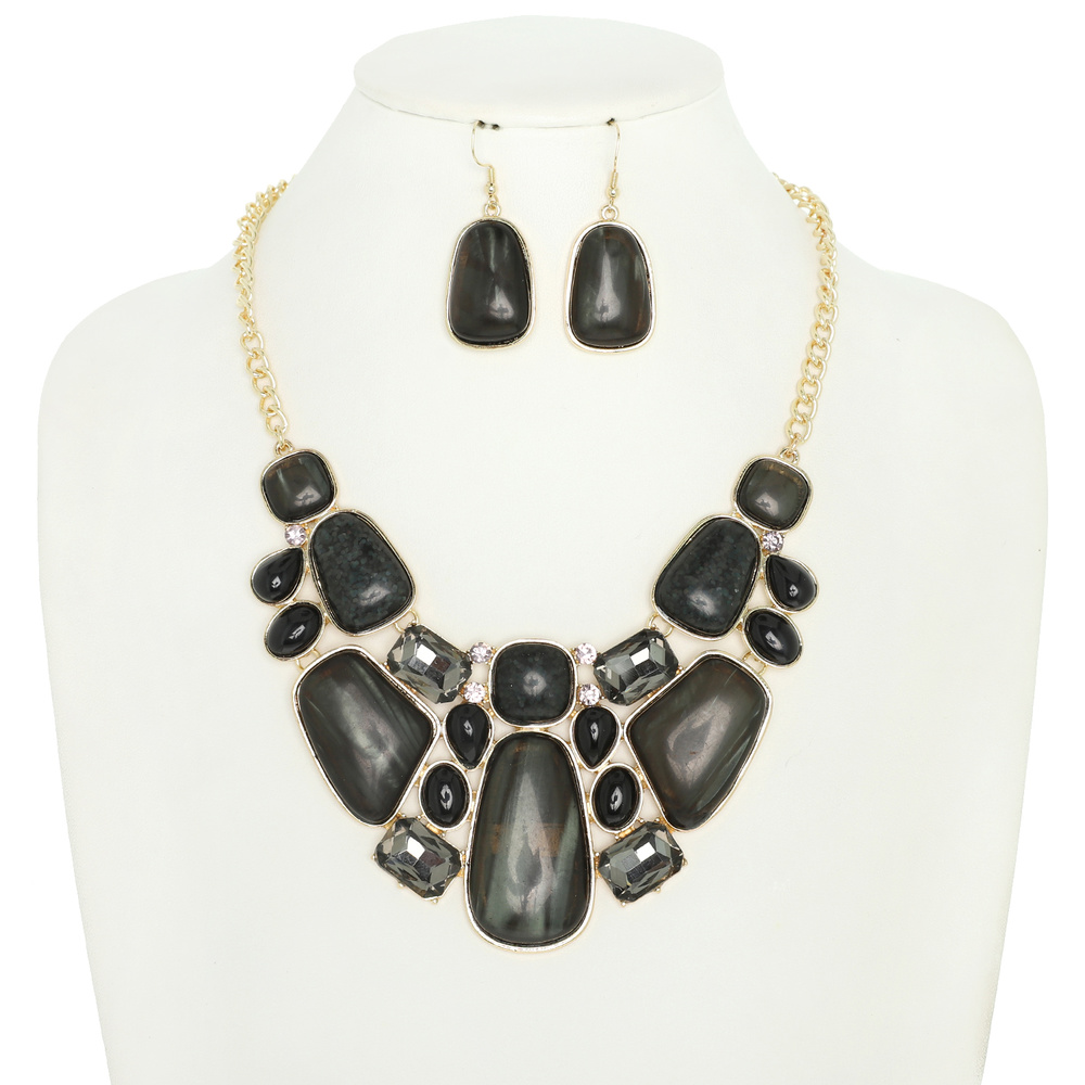 ASSORTED AGATE CRYSTAL GEMSTONE ADJUSTABLE BIB NECKLACE EARRING SET