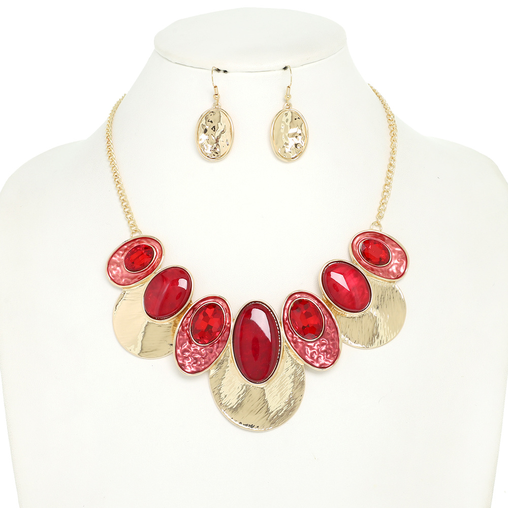 OVAL ACETATE RESIN METAL DISC BIB NECKLACE EARRING SET