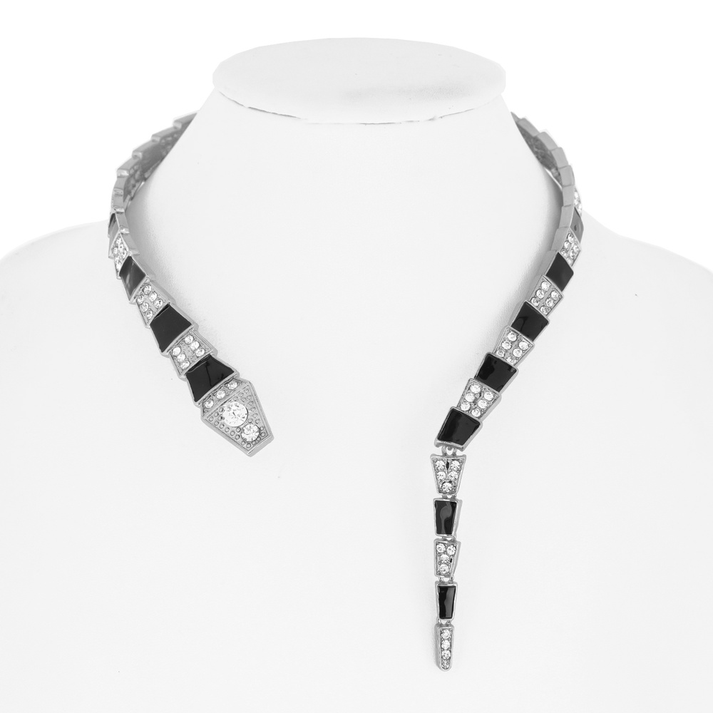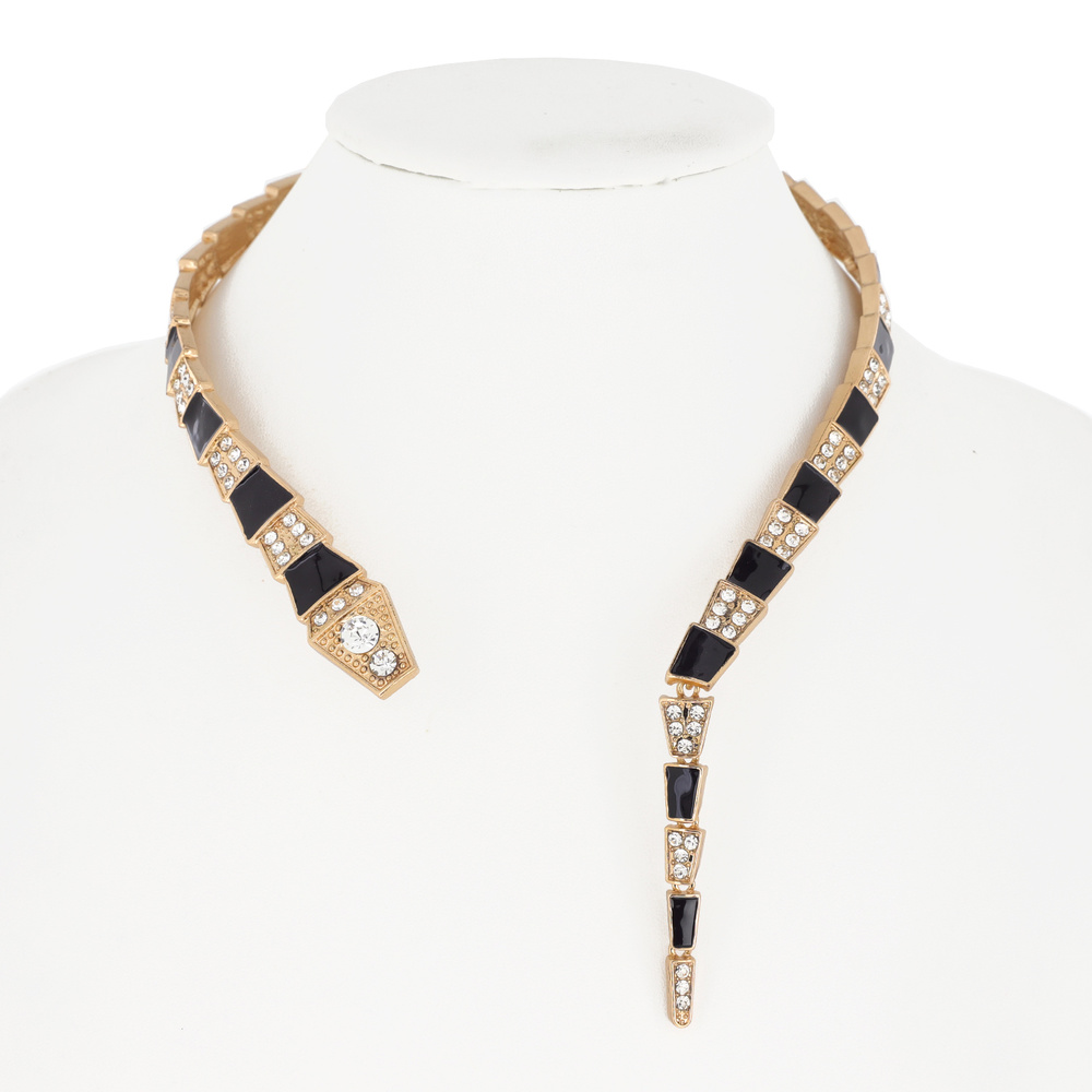 EPOXY ENAMEL AND MULTICOLOR CRYSTAL RHINESTONES SNAKE DESIGN STATEMENT NECKLACE