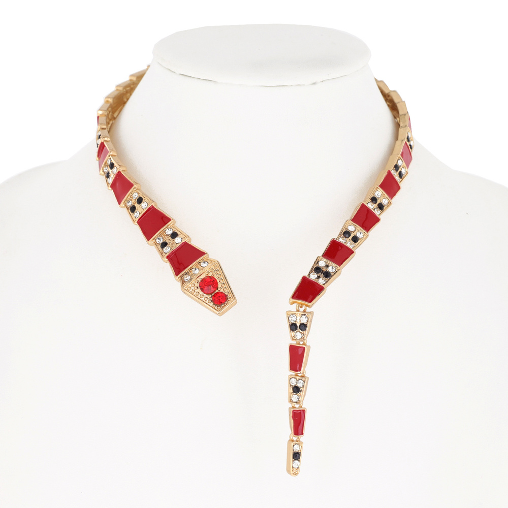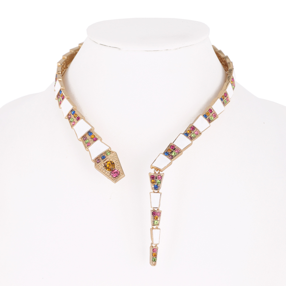 Epoxy Enamel And Multicolor Crystal Rhinestones Snake Design Statement Necklace