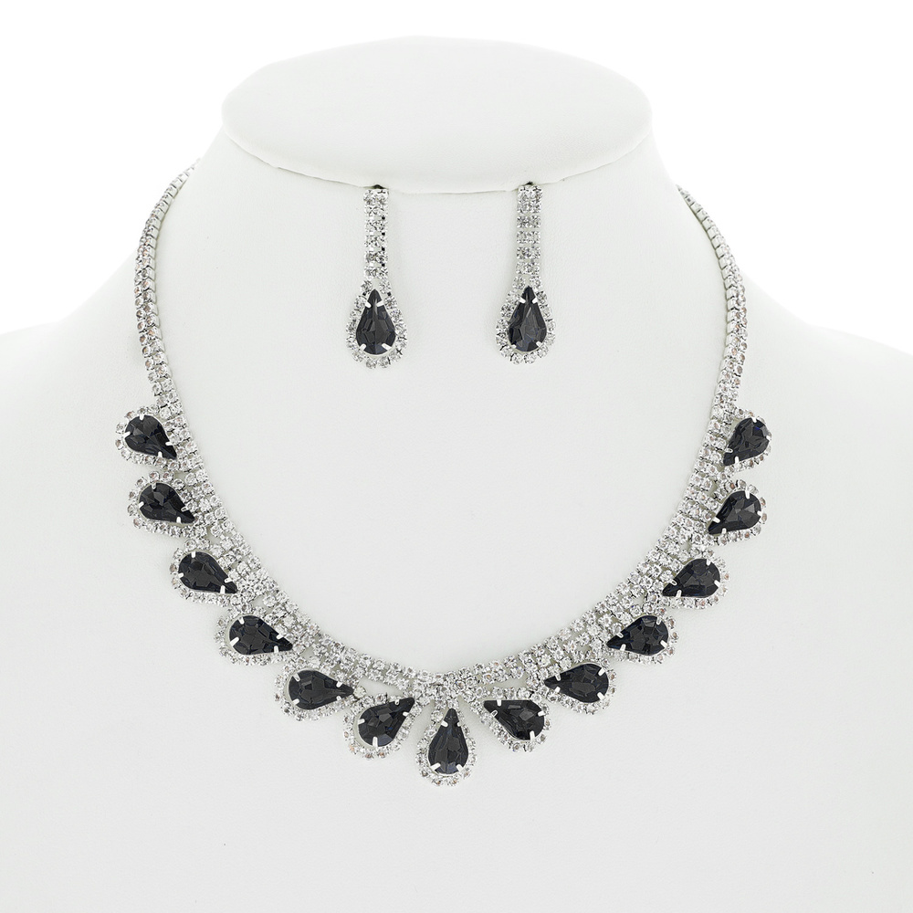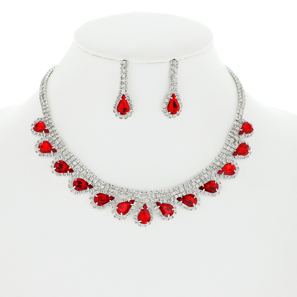 CRYSTAL PAVE TEARDROP CLUSTER PRINCESS NECKLACE EARRINGS SET