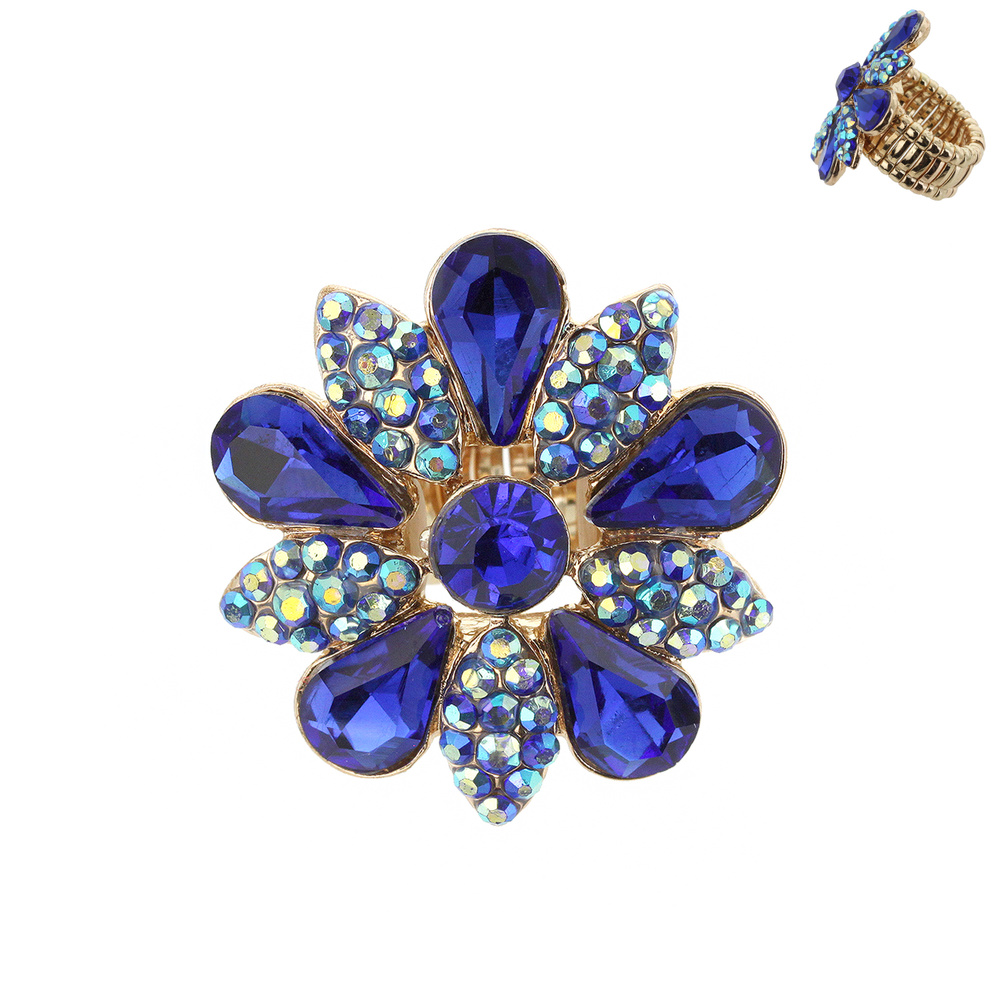 STRETCH FLOWER RHINESTONE RING