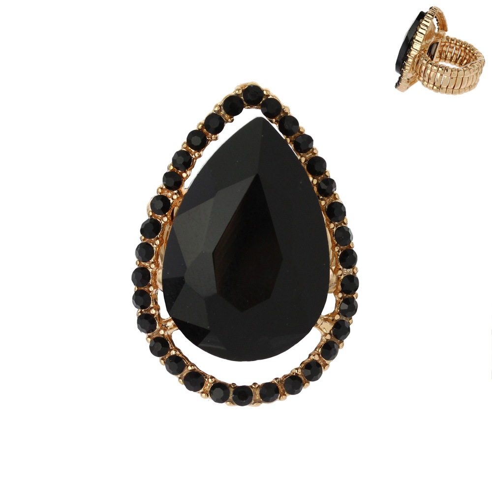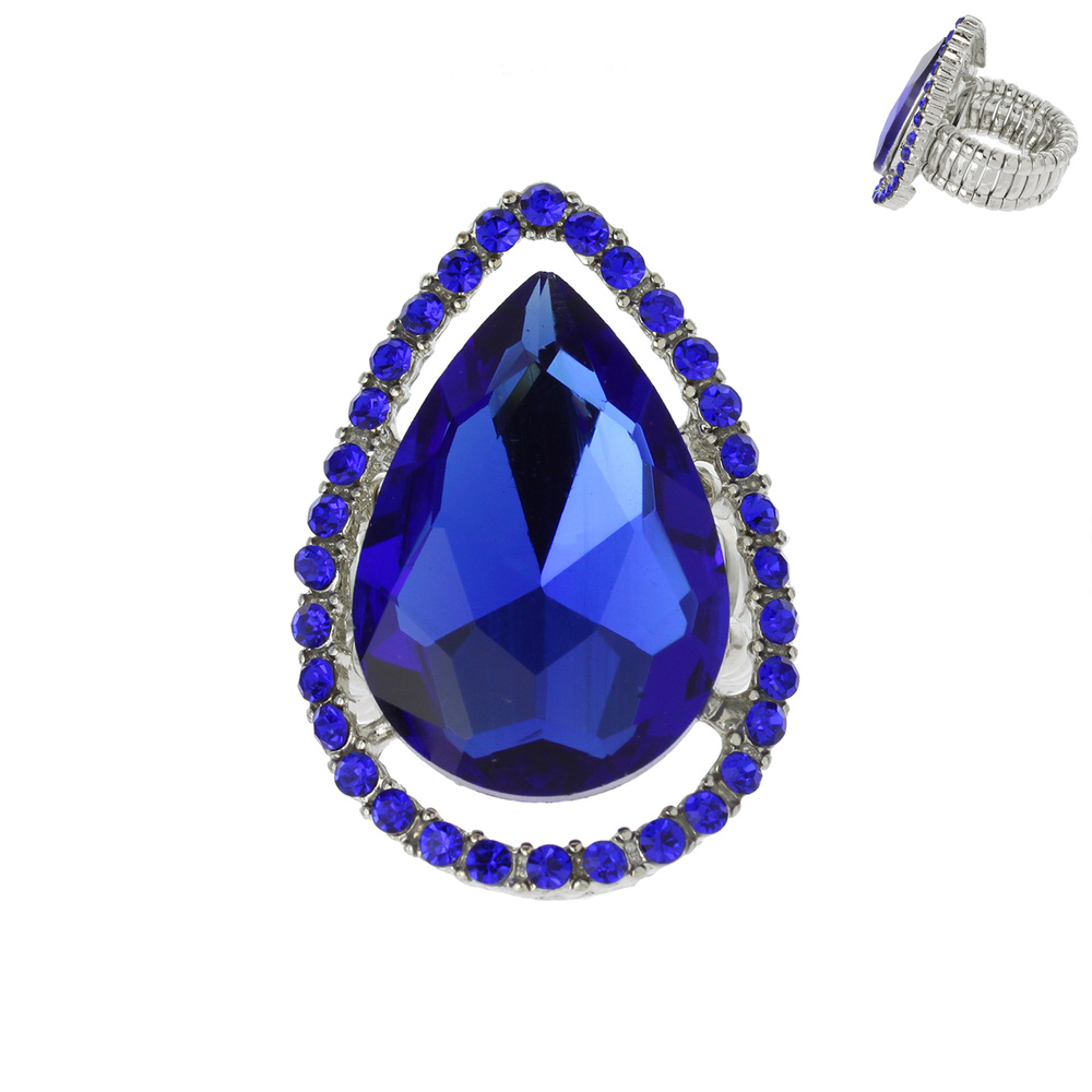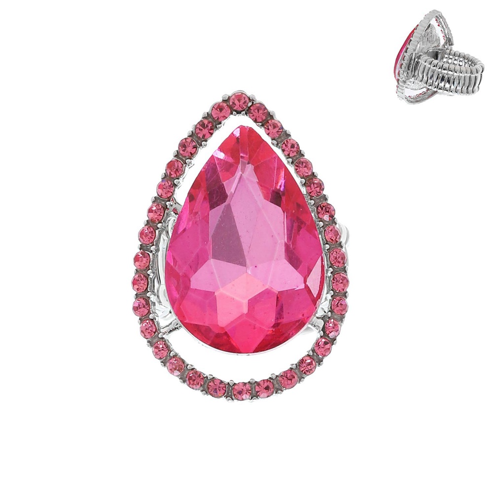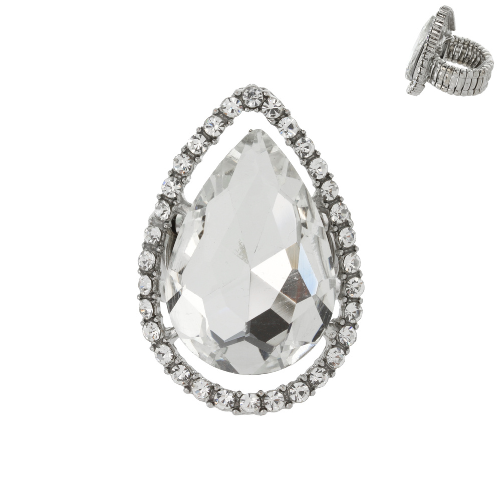 CRYSTAL RHINESTONE TEARDROP HALO STRETCH RING