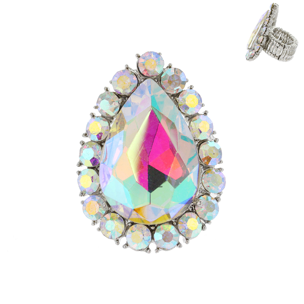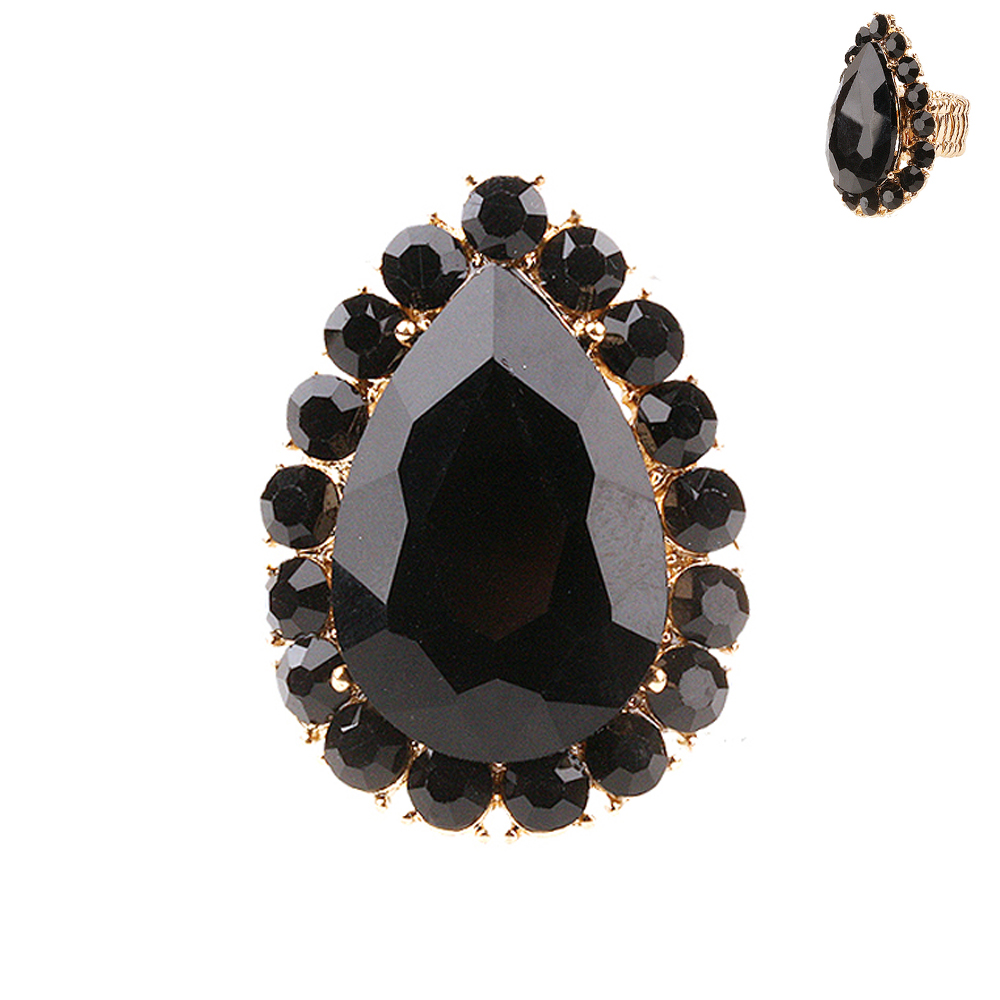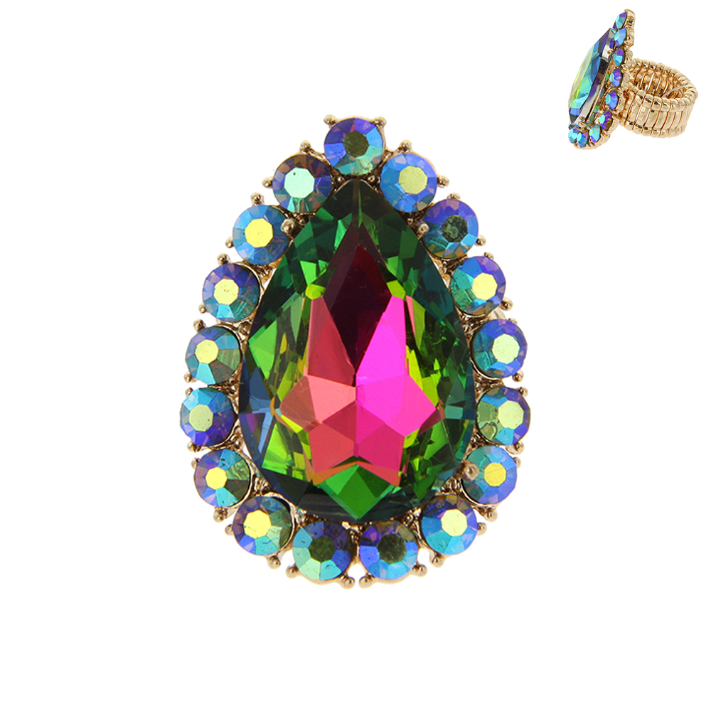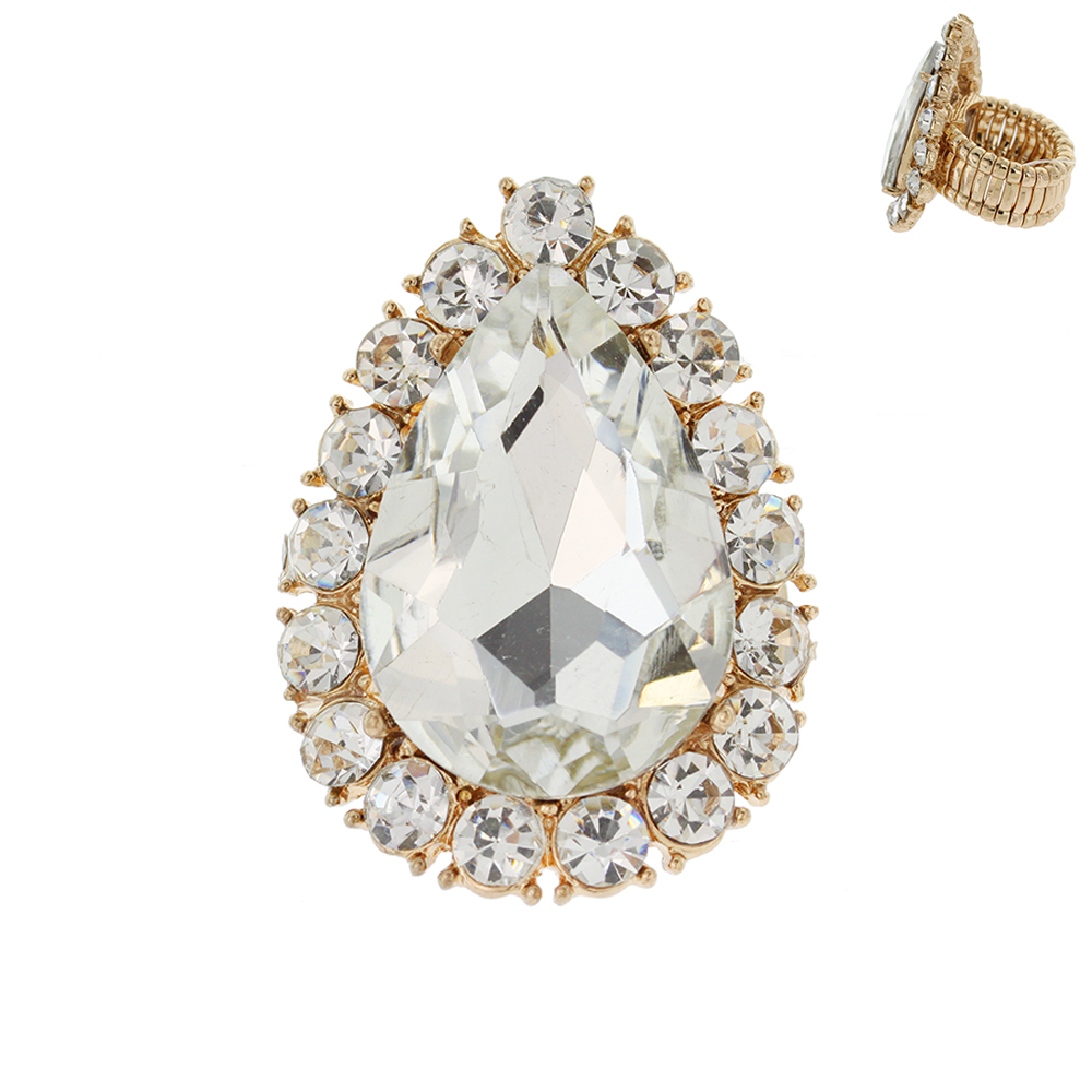 MULTI-CUT CRYSTAL BEZELED PEAR-SHAPED GEMSTONE STRETCH RING